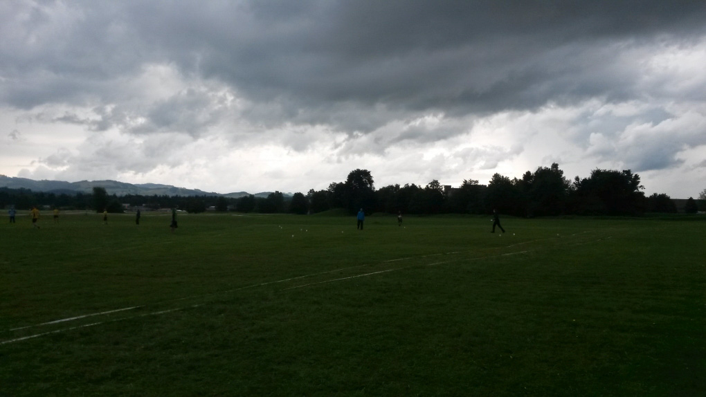Gymnastik: Von den 10 Turner:innen welche aufliefen, waren 7 das erste Mal an einem Turnfest dabei und machten dementsprechend auch zum ersten Mal Gymnastik. Gerade noch vor dem Regen konnten wir unsere Nummer aufführen und wurden mit der Note 7.20 belohnt.