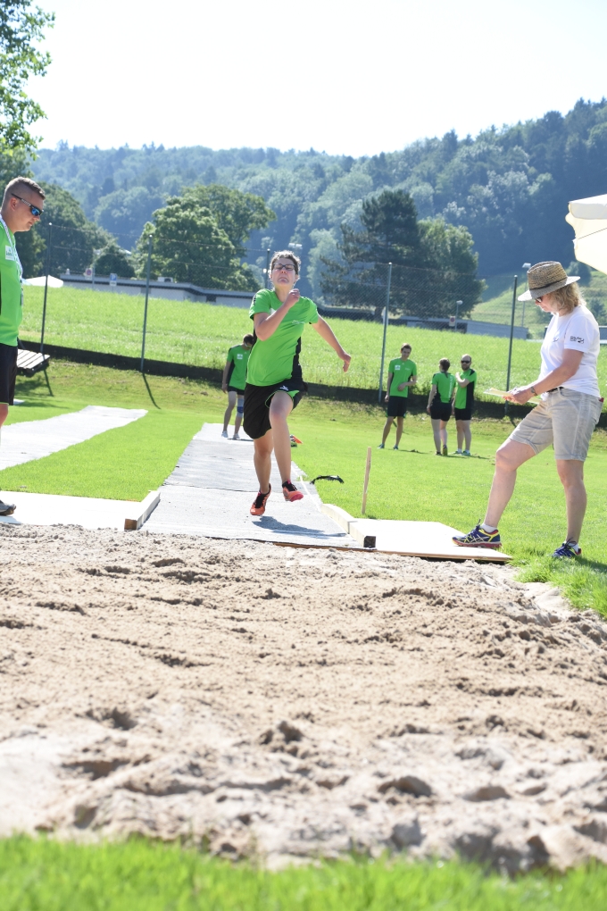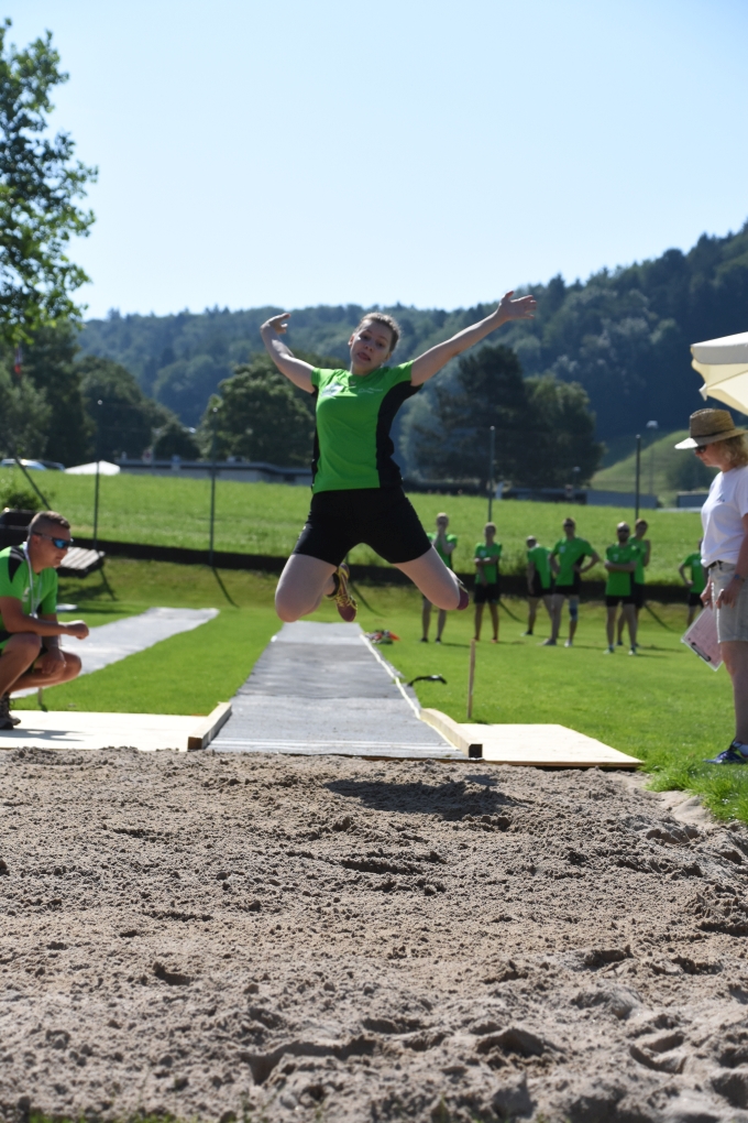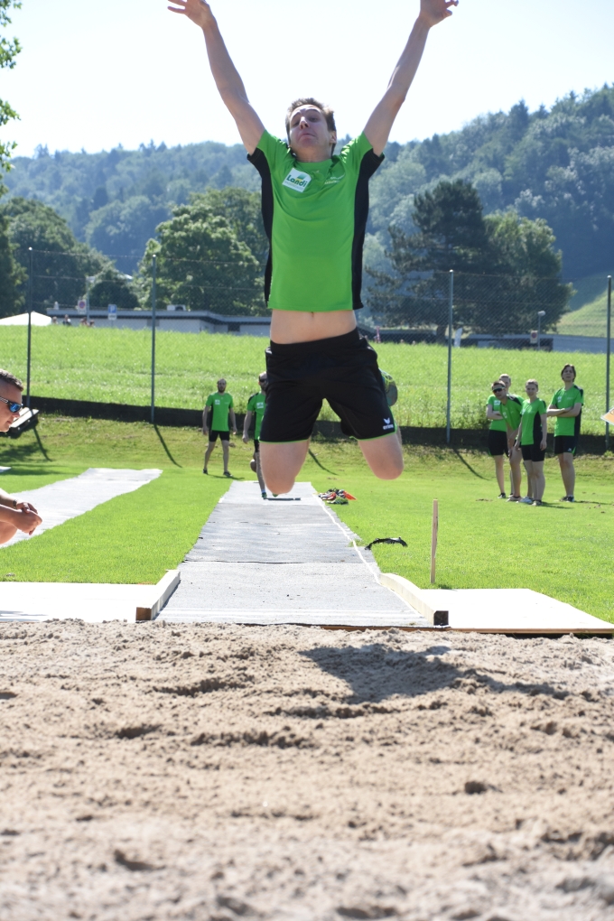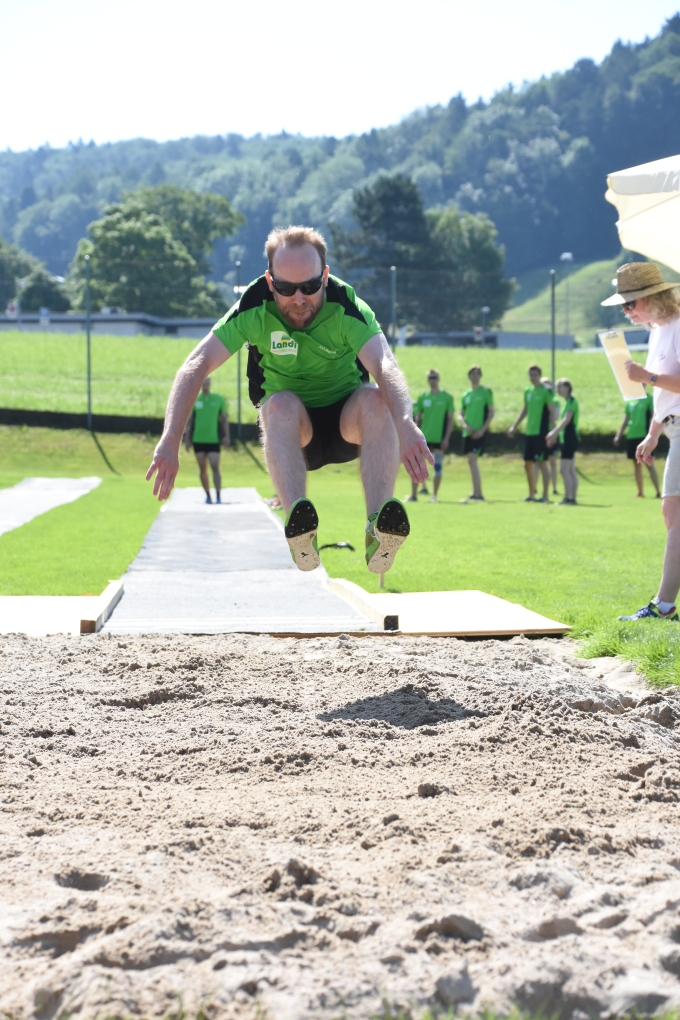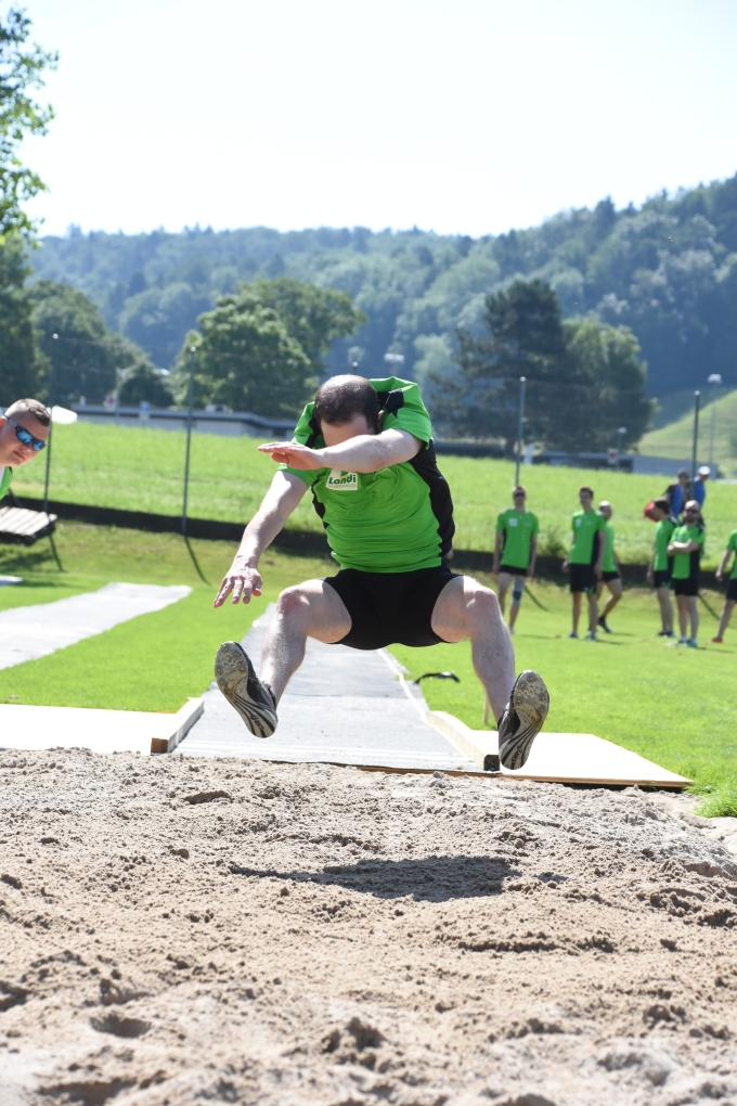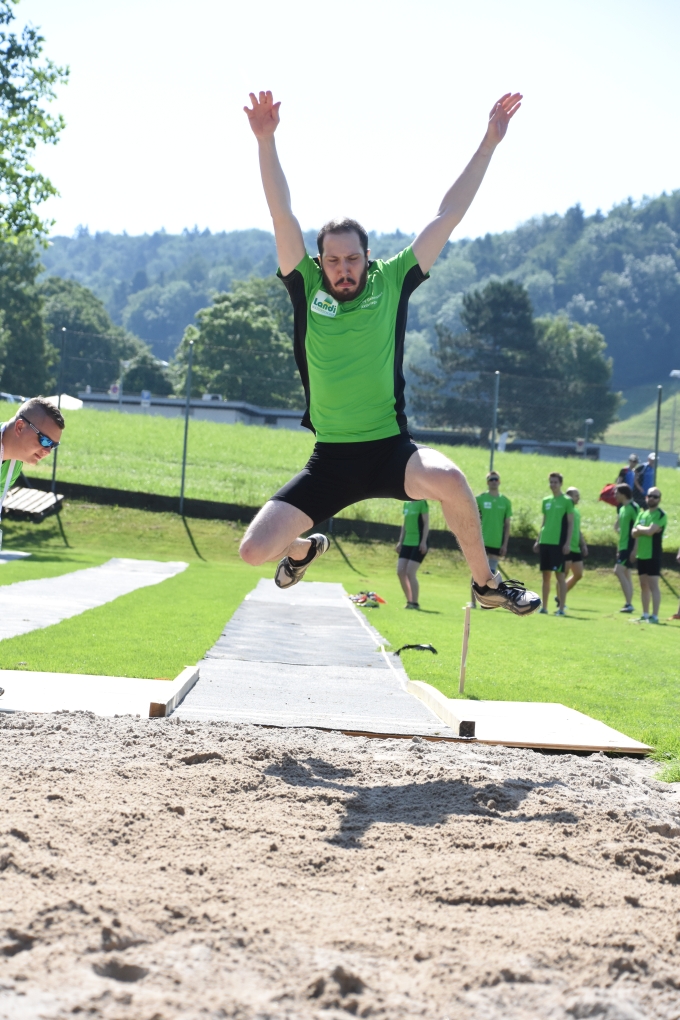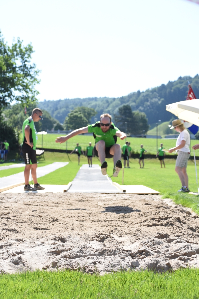 Weitsprung und Schleuderball: Hier zeigte die Organisation des ETF ein grosses Manko. Man musste sich nämlich mit den normalen ÖV zu den Wettkampfplätzen, welche in diesem Fall weit auseinander lagen, begeben. Dementsprechend kamen das Einlaufen und Vorbereiten zu kurz. Immerhin schien dies Svenja nicht zu beeindrucken, mit 4.31m erreichte sie die Note 9.00. Im Schleuderball war es dann so, dass die Anlaufbahn zu schmal war und unsere Aktivriegler:innen wortwörtlich aus der Bahn geworfen wurden.