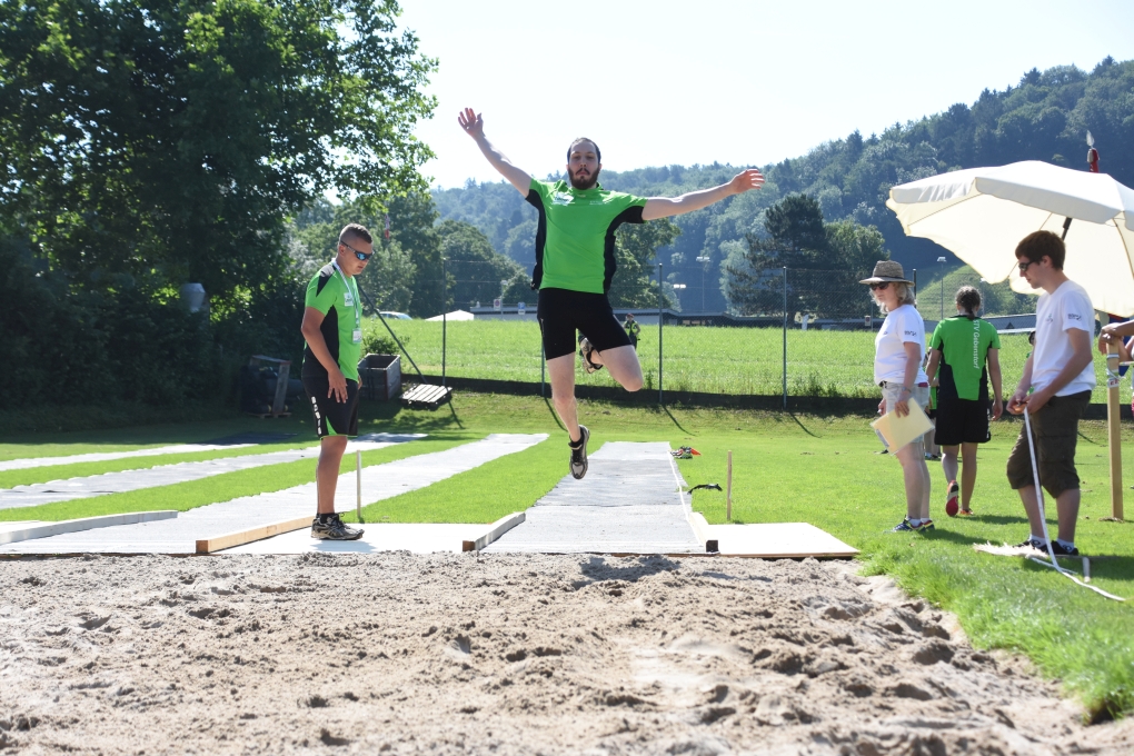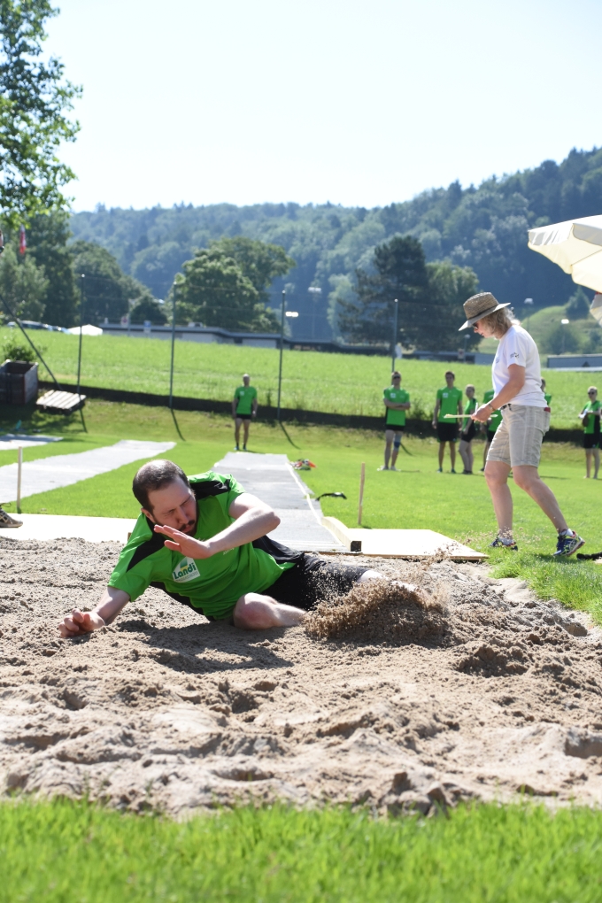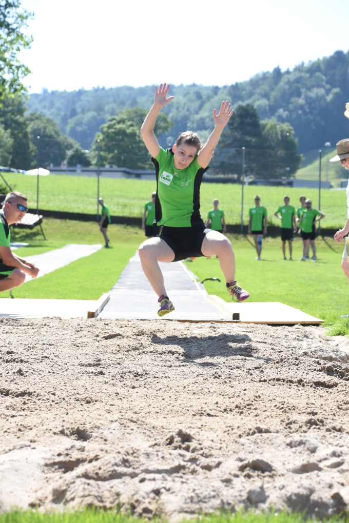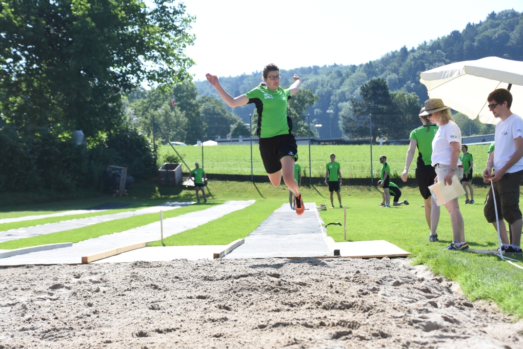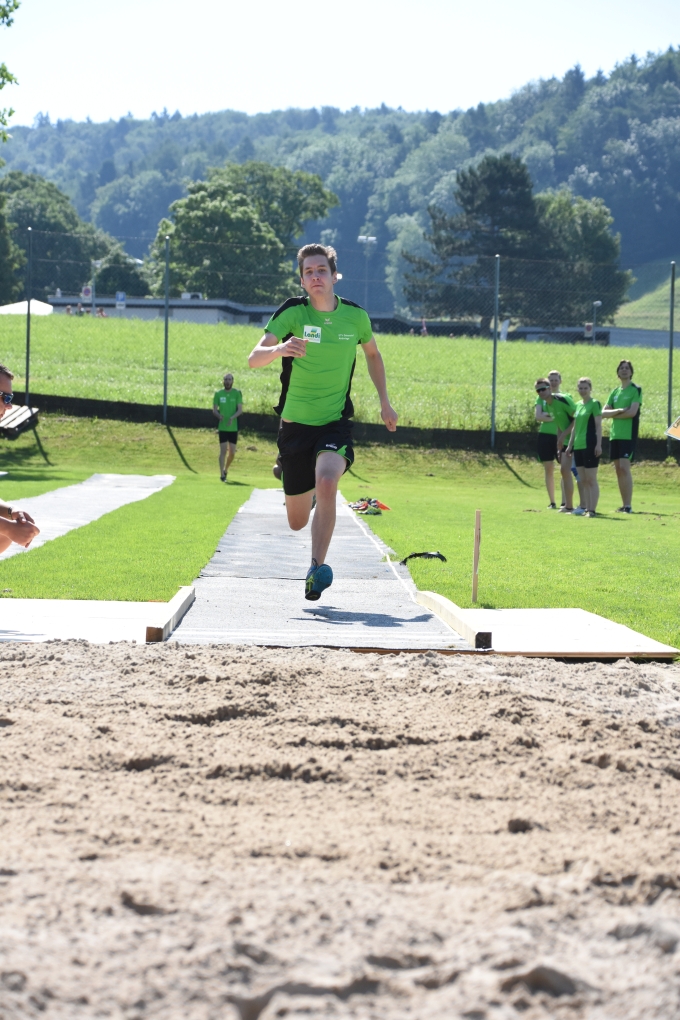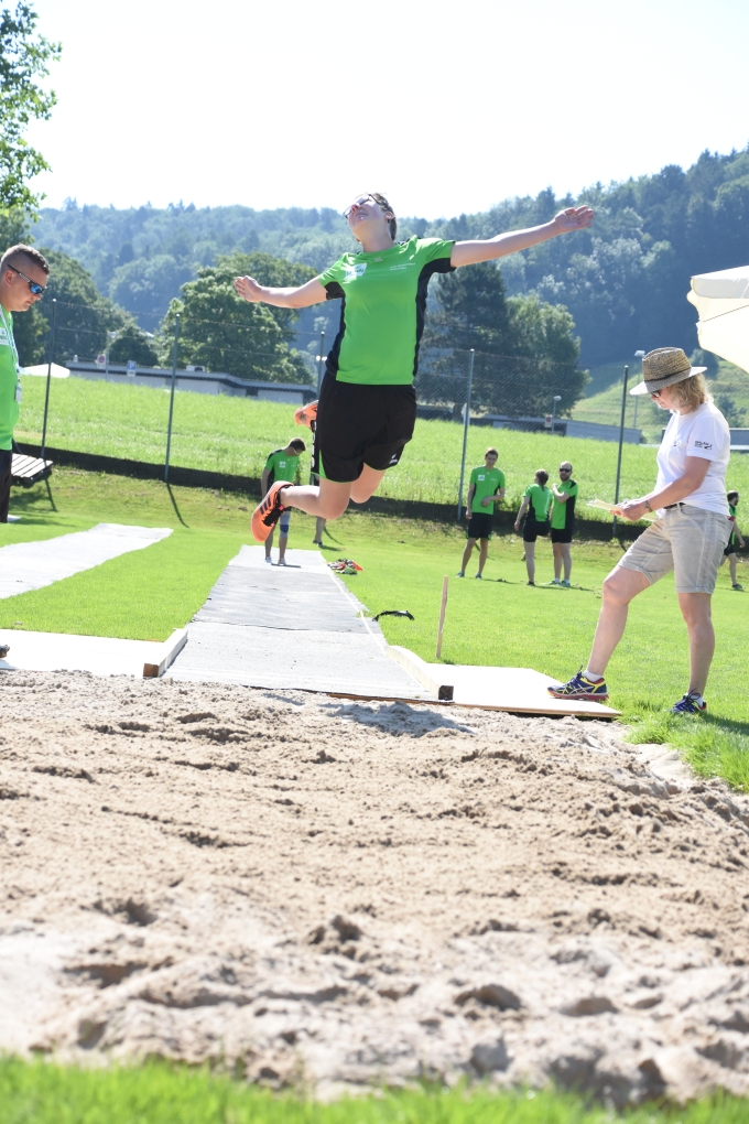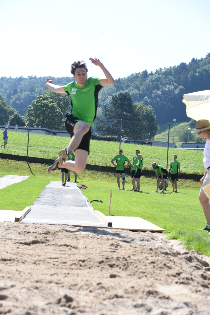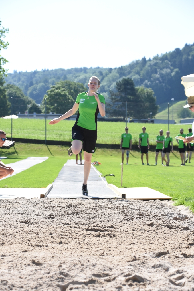 Weitsprung und Schleuderball: Hier zeigte die Organisation des ETF ein grosses Manko. Man musste sich nämlich mit den normalen ÖV zu den Wettkampfplätzen, welche in diesem Fall weit auseinander lagen, begeben. Dementsprechend kamen das Einlaufen und Vorbereiten zu kurz. Immerhin schien dies Svenja nicht zu beeindrucken, mit 4.31m erreichte sie die Note 9.00. Im Schleuderball war es dann so, dass die Anlaufbahn zu schmal war und unsere Aktivriegler:innen wortwörtlich aus der Bahn geworfen wurden.
