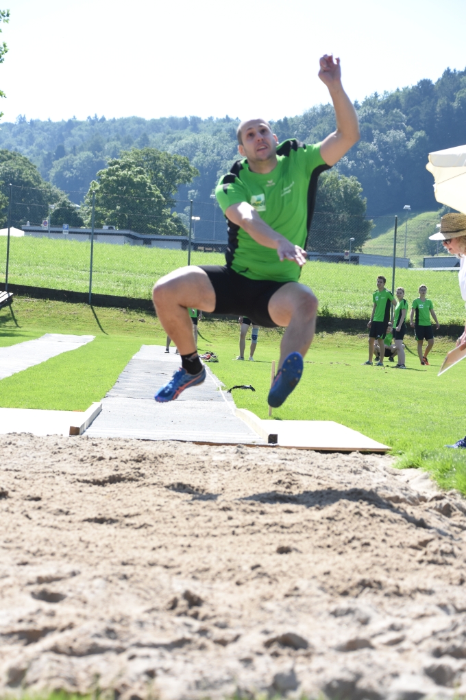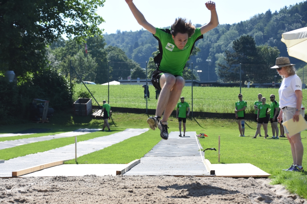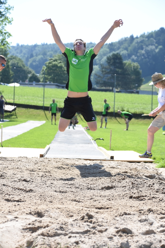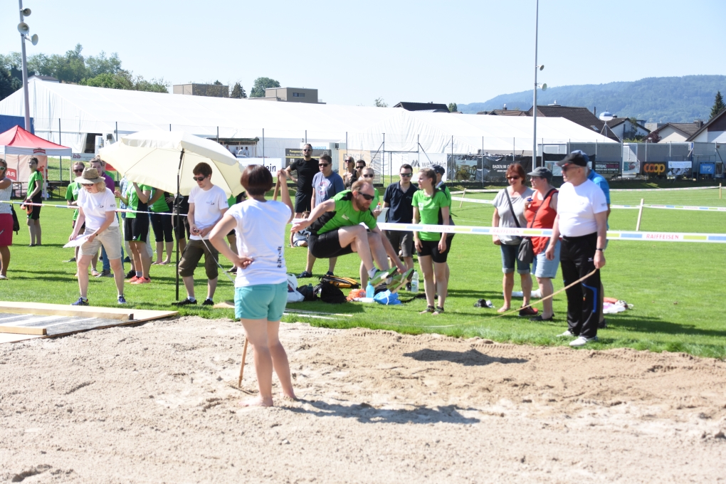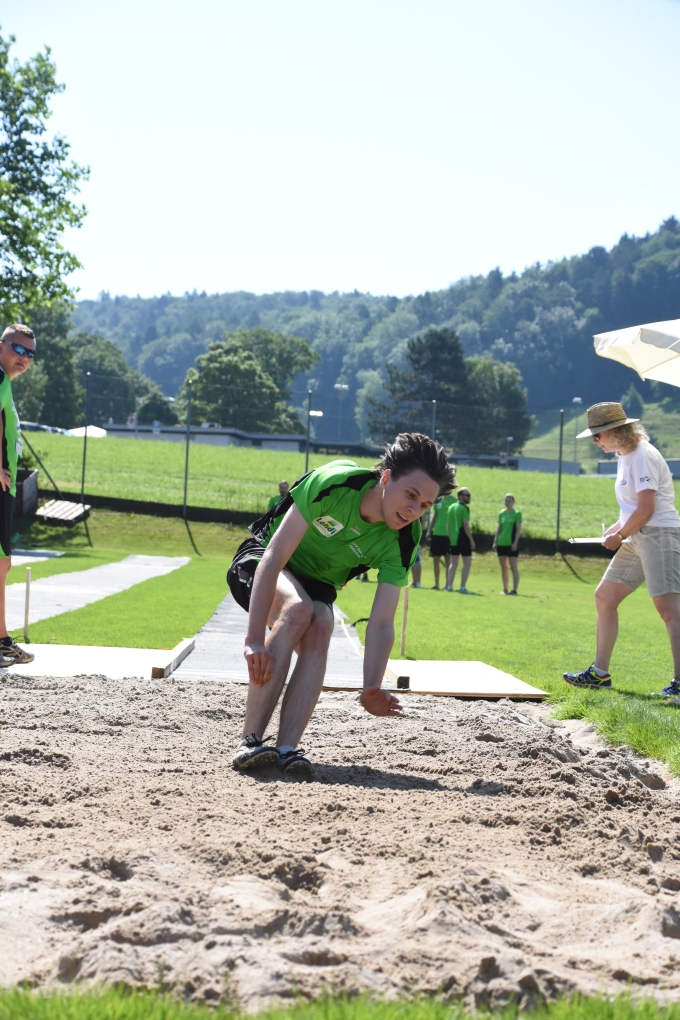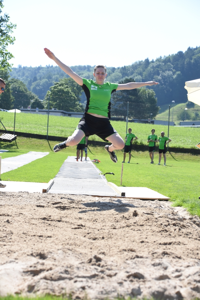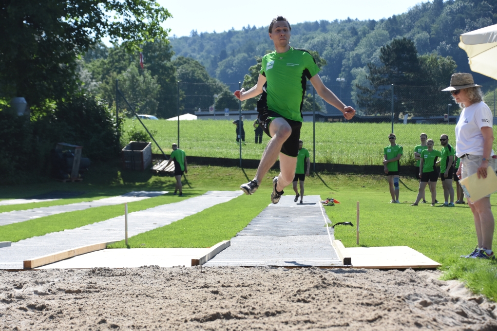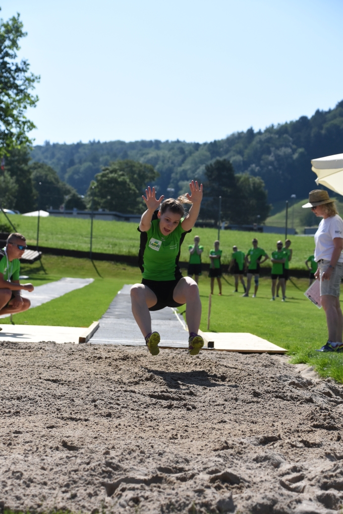 Weitsprung und Schleuderball: Hier zeigte die Organisation des ETF ein grosses Manko. Man musste sich nämlich mit den normalen ÖV zu den Wettkampfplätzen, welche in diesem Fall weit auseinander lagen, begeben. Dementsprechend kamen das Einlaufen und Vorbereiten zu kurz. Immerhin schien dies Svenja nicht zu beeindrucken, mit 4.31m erreichte sie die Note 9.00. Im Schleuderball war es dann so, dass die Anlaufbahn zu schmal war und unsere Aktivriegler:innen wortwörtlich aus der Bahn geworfen wurden.