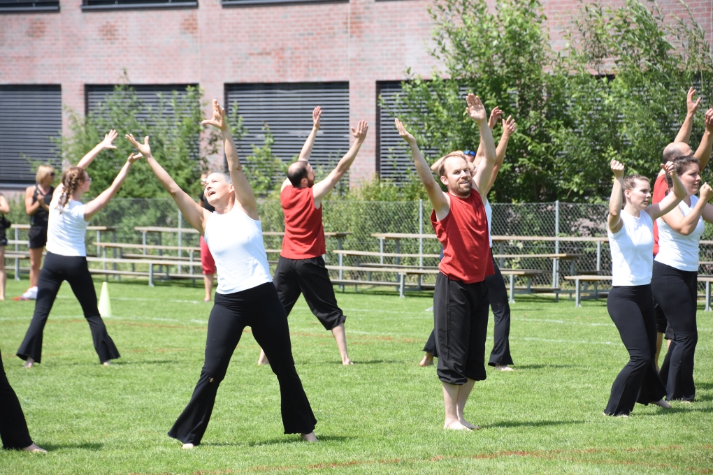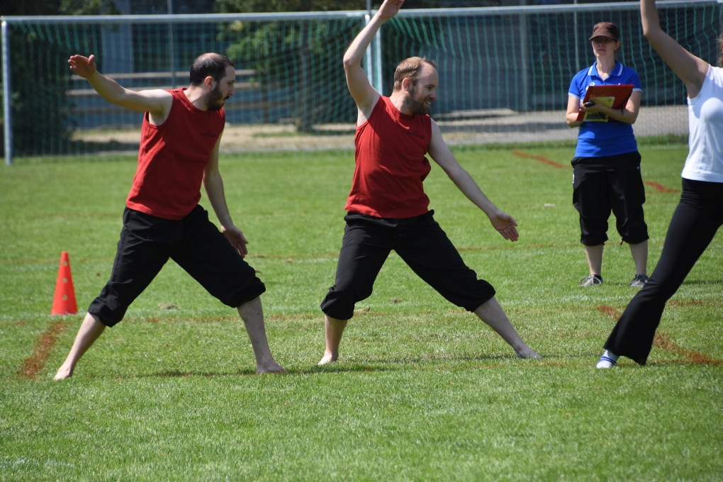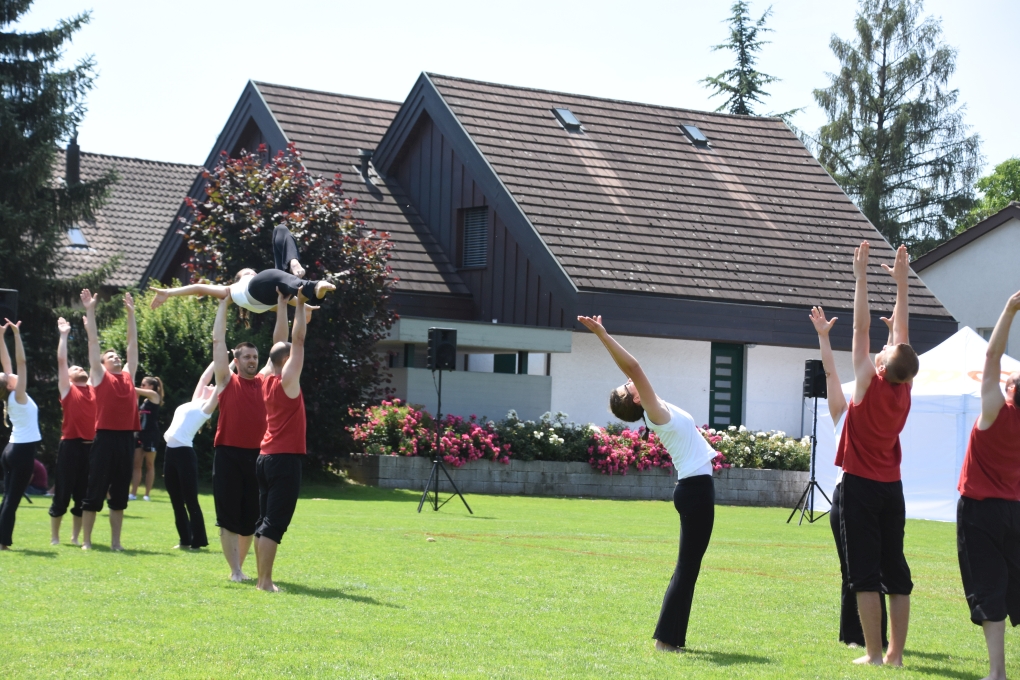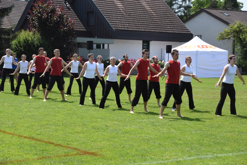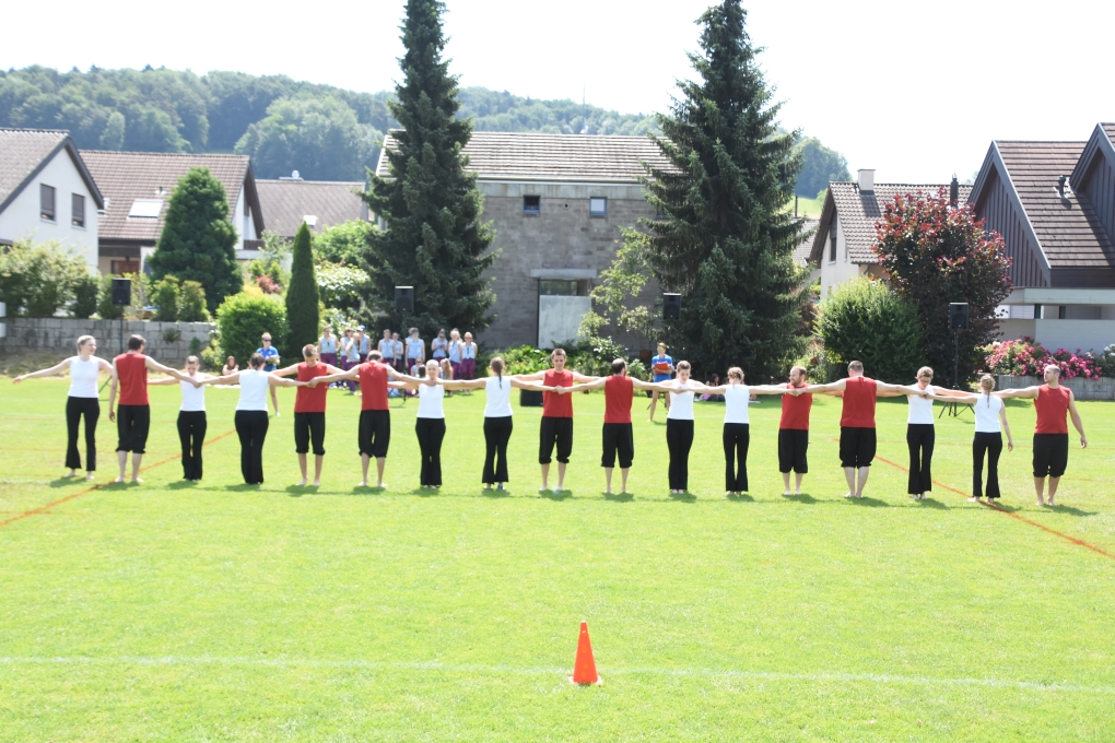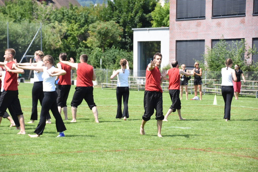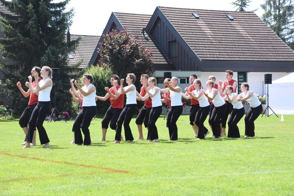 Gymnastik: Von den 10 Turner:innen welche aufliefen, waren 7 das erste Mal an einem Turnfest dabei und machten dementsprechend auch zum ersten Mal Gymnastik. Gerade noch vor dem Regen konnten wir unsere Nummer aufführen und wurden mit der Note 7.20 belohnt.
