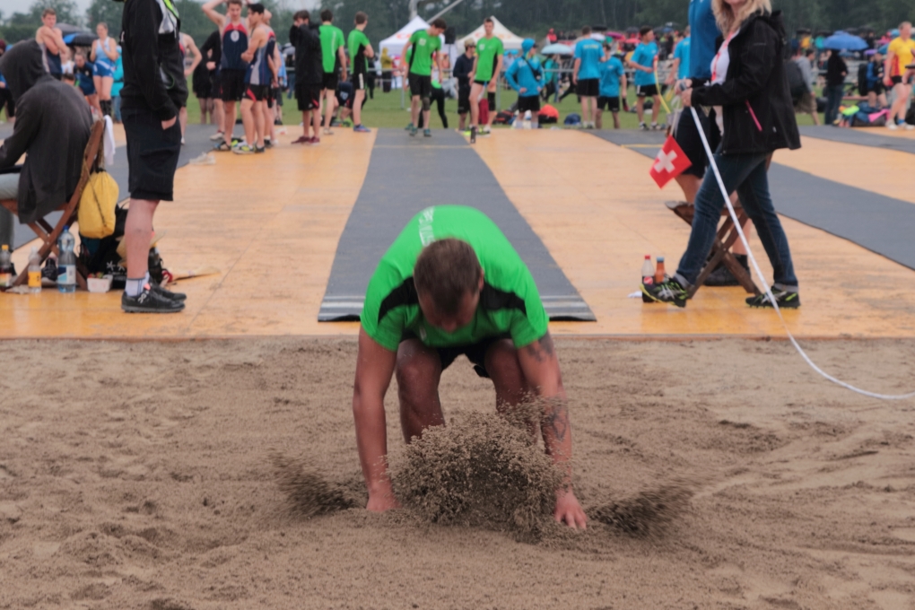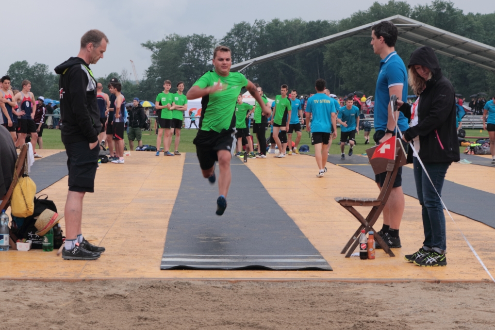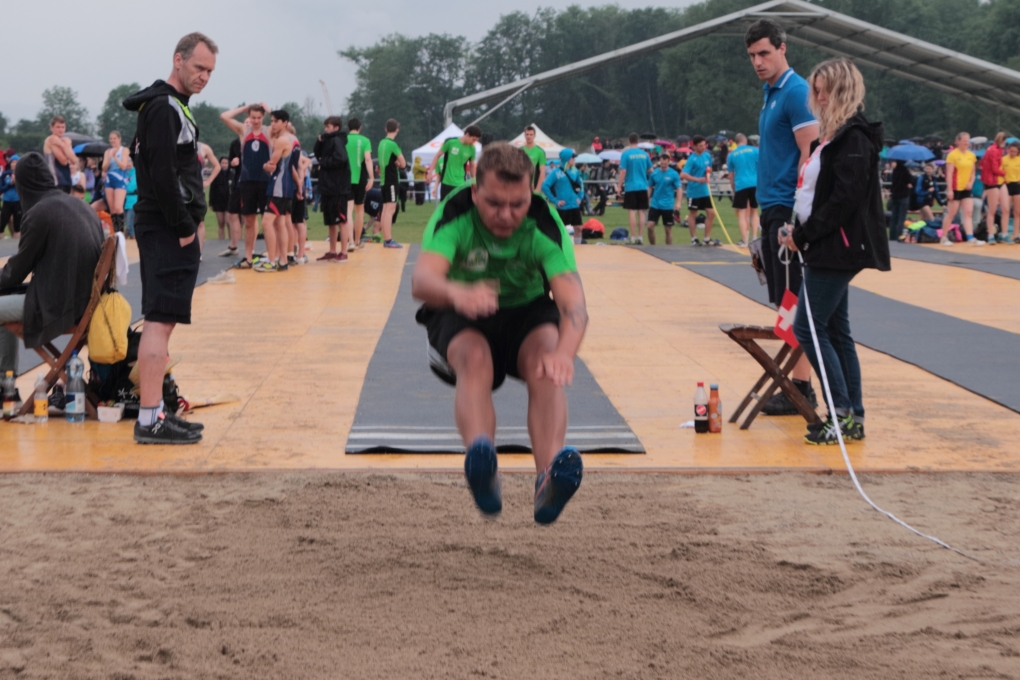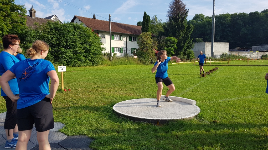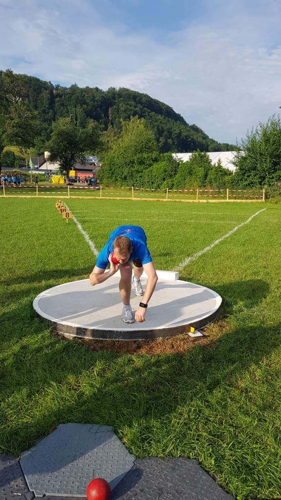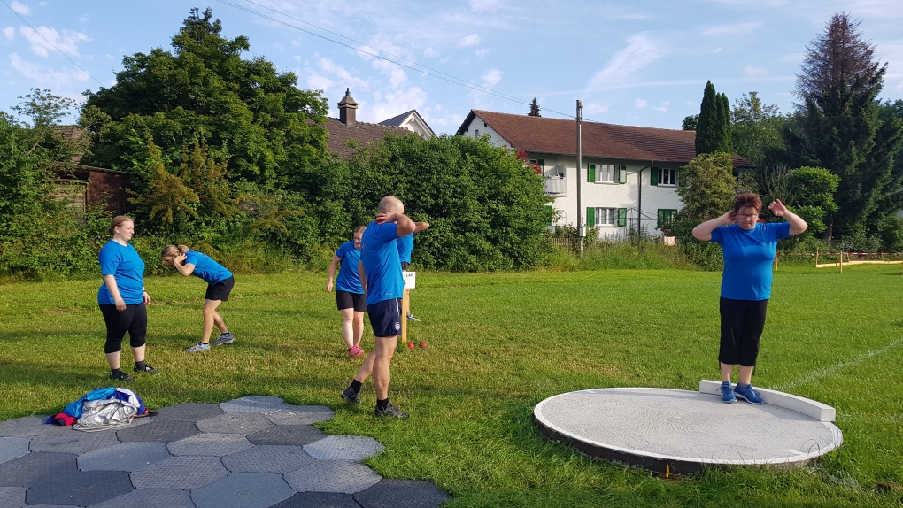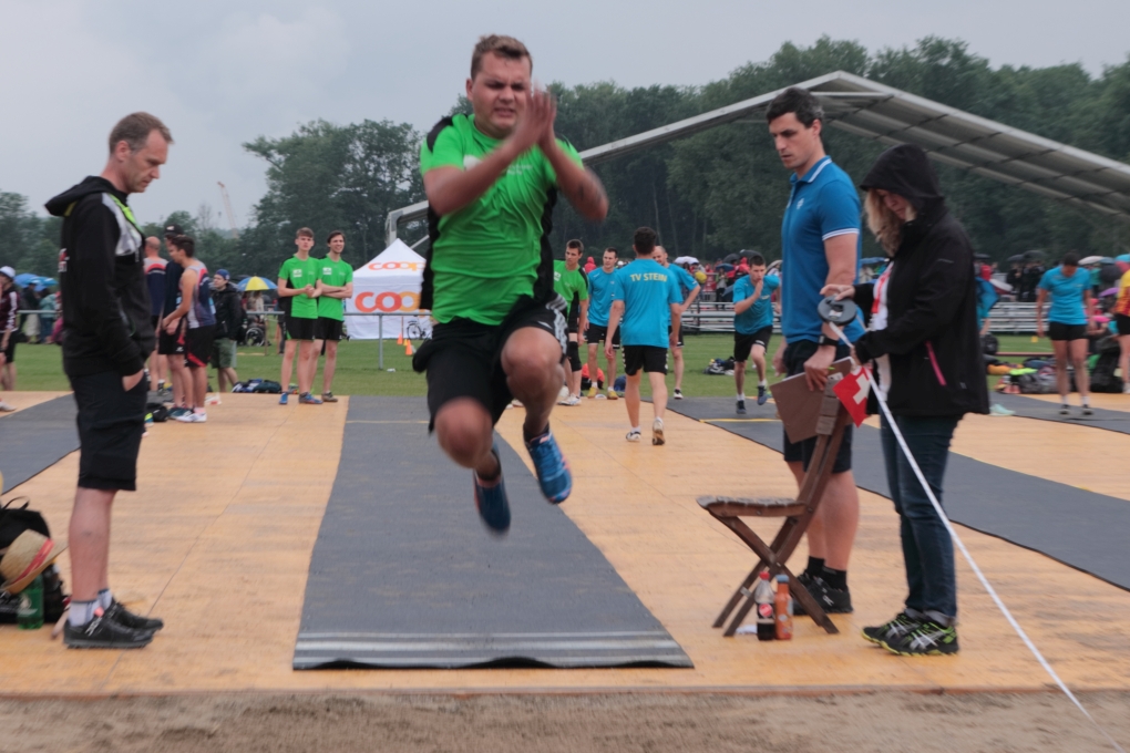 Weitsprung und Schleuderball: Hier zeigte die Organisation des ETF ein grosses Manko. Man musste sich nämlich mit den normalen ÖV zu den Wettkampfplätzen, welche in diesem Fall weit auseinander lagen, begeben. Dementsprechend kamen das Einlaufen und Vorbereiten zu kurz. Immerhin schien dies Svenja nicht zu beeindrucken, mit 4.31m erreichte sie die Note 9.00. Im Schleuderball war es dann so, dass die Anlaufbahn zu schmal war und unsere Aktivriegler:innen wortwörtlich aus der Bahn geworfen wurden.