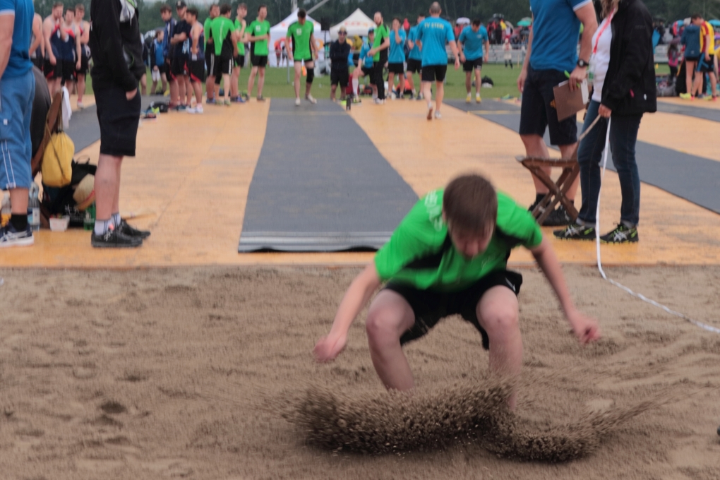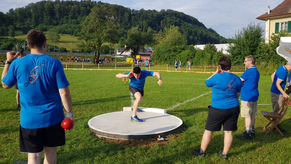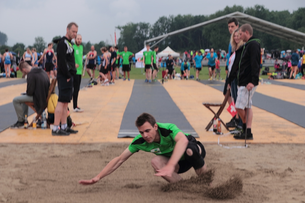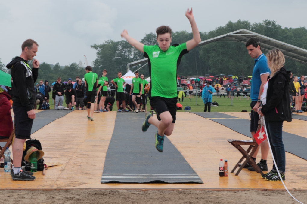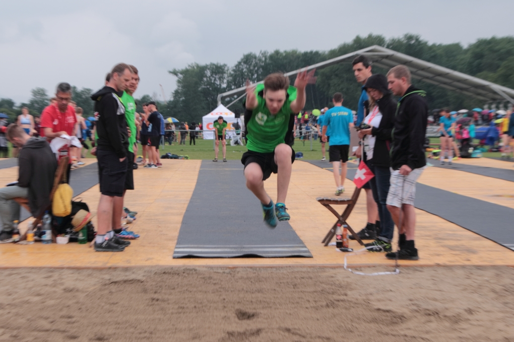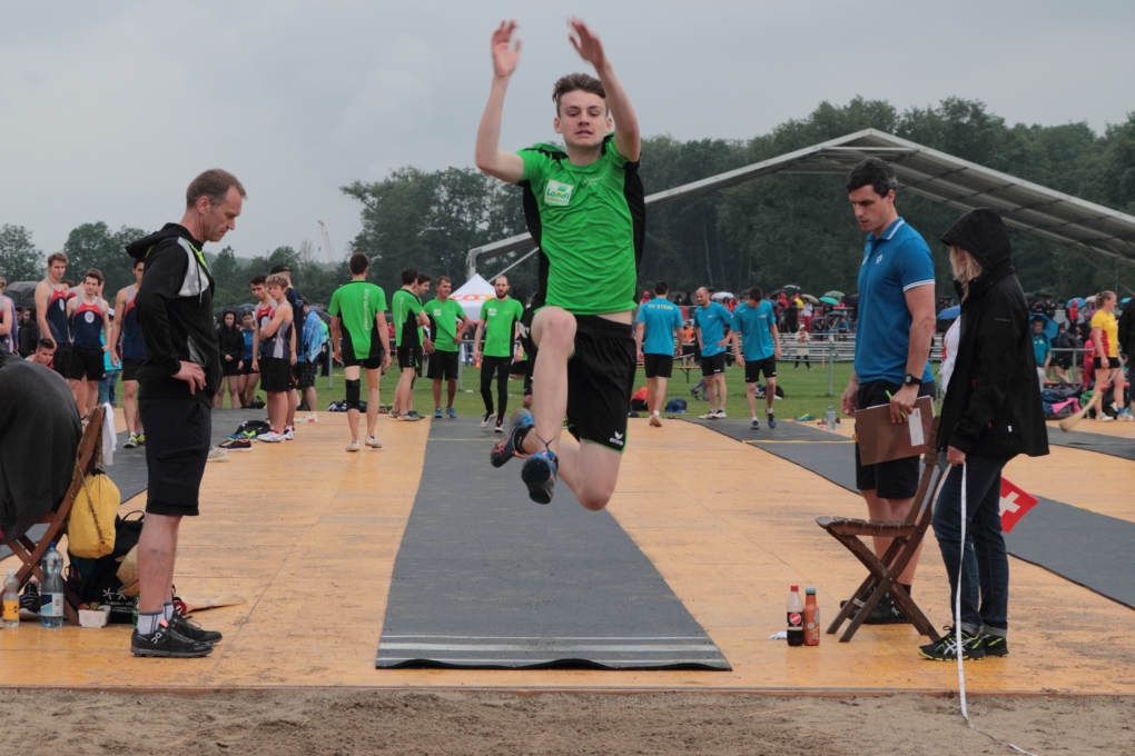 Weitsprung und Schleuderball: Hier zeigte die Organisation des ETF ein grosses Manko. Man musste sich nämlich mit den normalen ÖV zu den Wettkampfplätzen, welche in diesem Fall weit auseinander lagen, begeben. Dementsprechend kamen das Einlaufen und Vorbereiten zu kurz. Immerhin schien dies Svenja nicht zu beeindrucken, mit 4.31m erreichte sie die Note 9.00. Im Schleuderball war es dann so, dass die Anlaufbahn zu schmal war und unsere Aktivriegler:innen wortwörtlich aus der Bahn geworfen wurden.