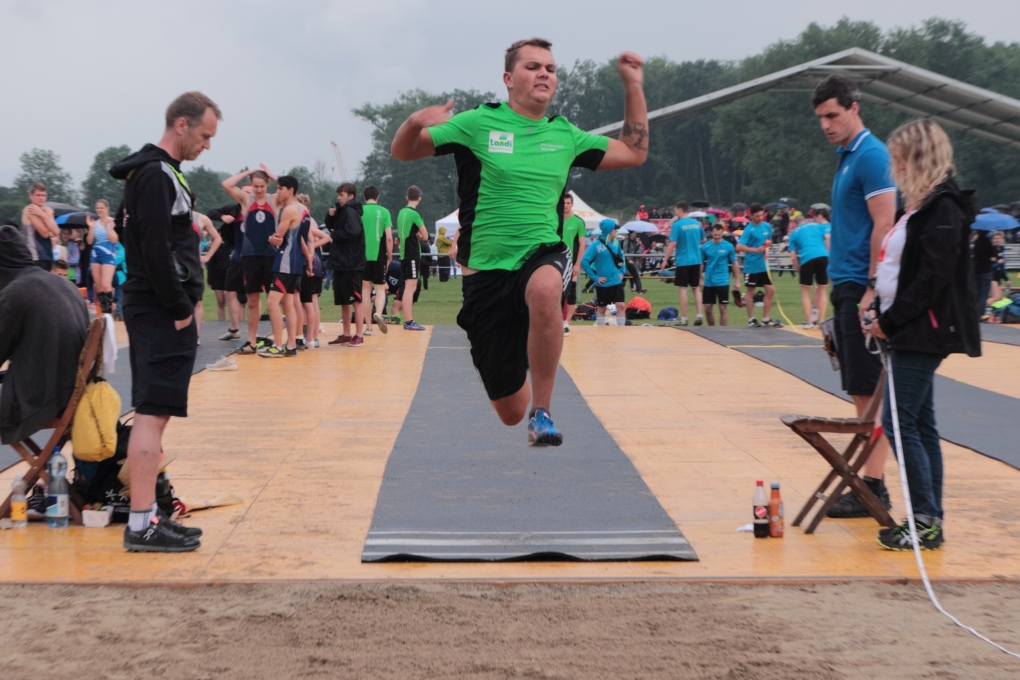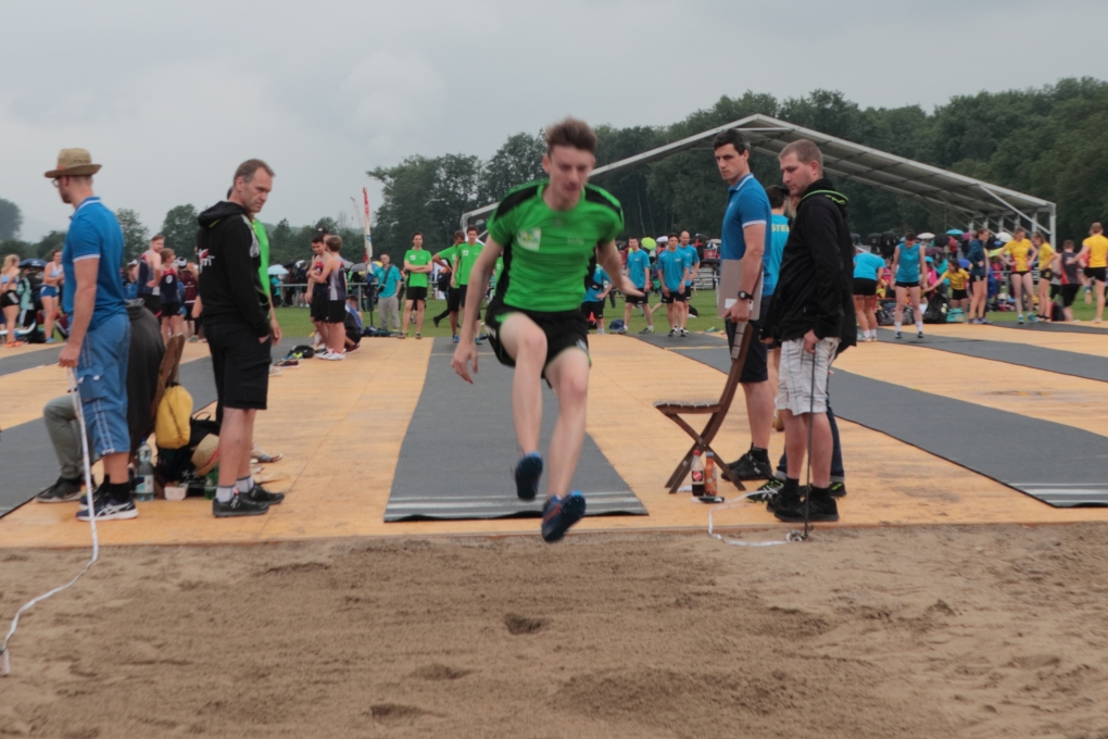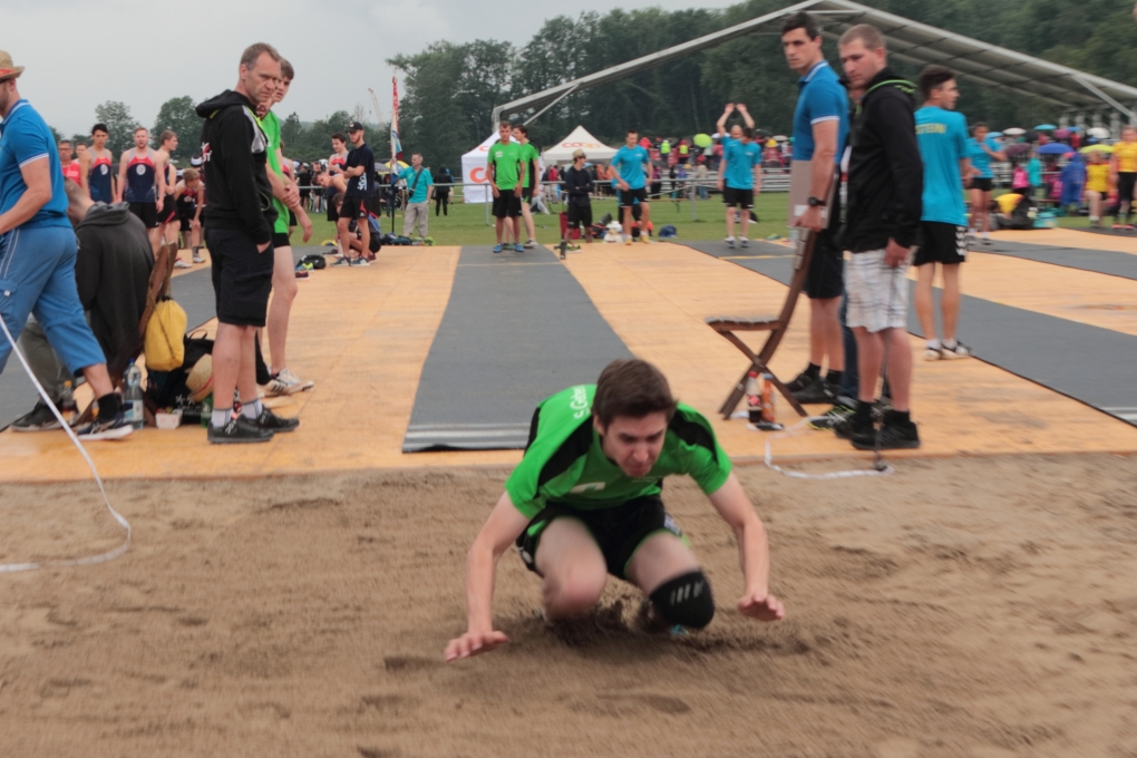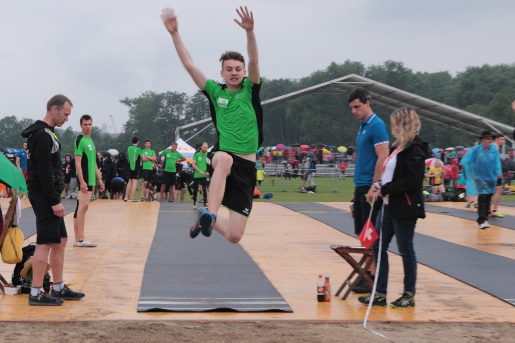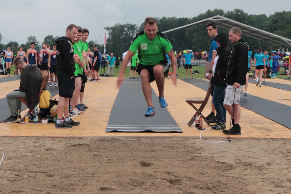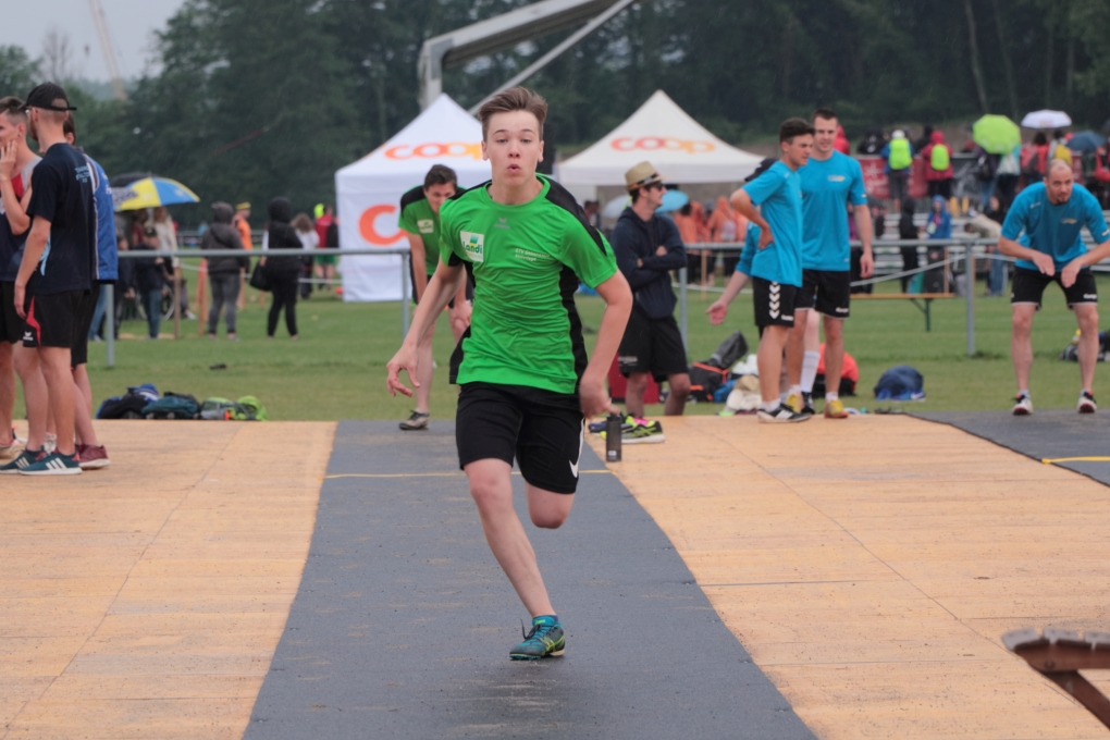 Weitsprung und Schleuderball: Hier zeigte die Organisation des ETF ein grosses Manko. Man musste sich nämlich mit den normalen ÖV zu den Wettkampfplätzen, welche in diesem Fall weit auseinander lagen, begeben. Dementsprechend kamen das Einlaufen und Vorbereiten zu kurz. Immerhin schien dies Svenja nicht zu beeindrucken, mit 4.31m erreichte sie die Note 9.00. Im Schleuderball war es dann so, dass die Anlaufbahn zu schmal war und unsere Aktivriegler:innen wortwörtlich aus der Bahn geworfen wurden.