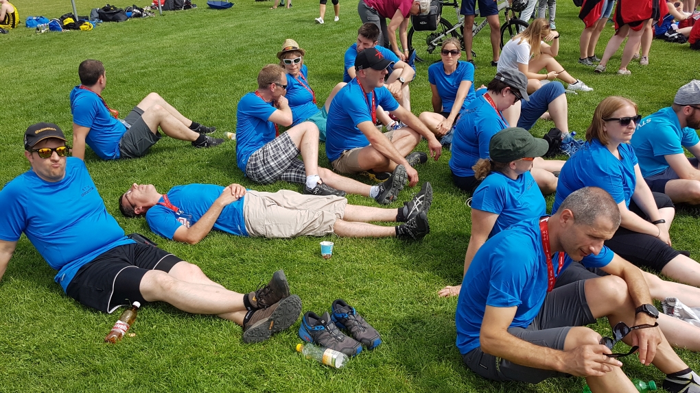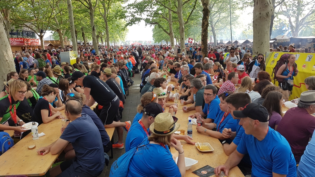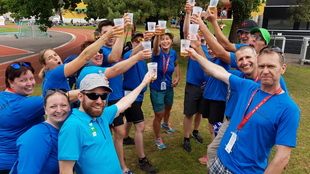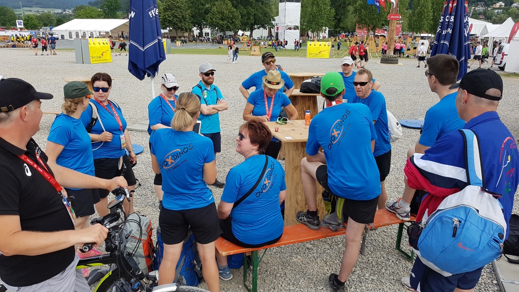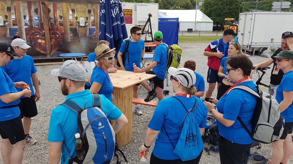 Da wir spät starteten, waren wir auch spät fertig mit dem Wettkampf, bis wir geduscht waren und etwas gegessen hatten, war es bereits 21:00 Uhr. Die grossen Festzelte waren bereits voll und auch vor den Festzelten, tummelten sich so viele Menschen, dass man gar nicht mehr gross zu den Partyorten rankam. Also setzten wir uns auf eine Wiese am See und genossen so den Abend.