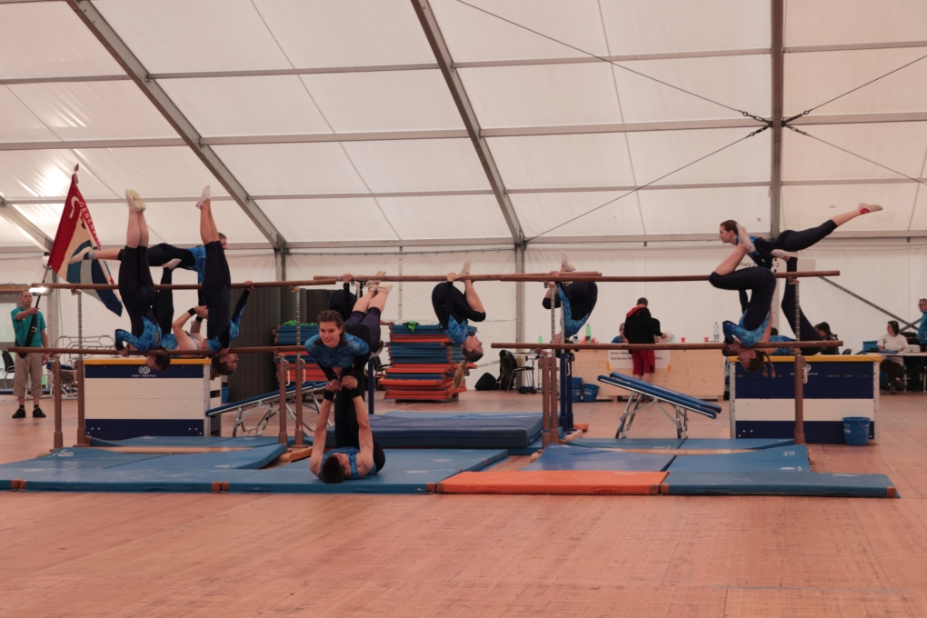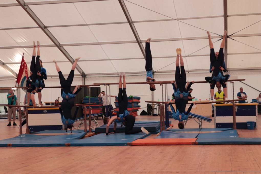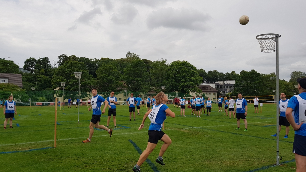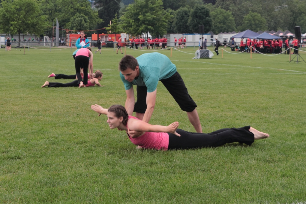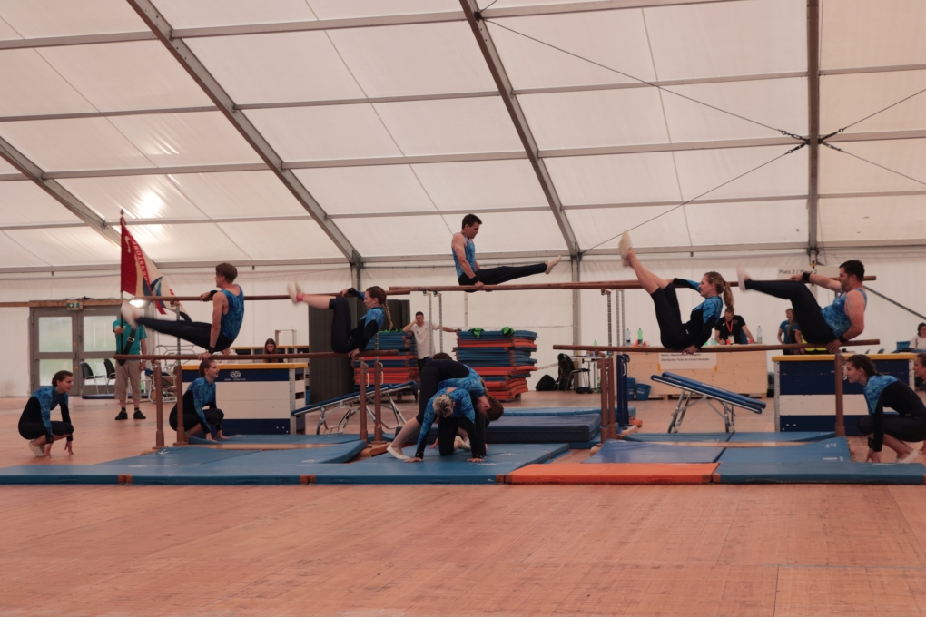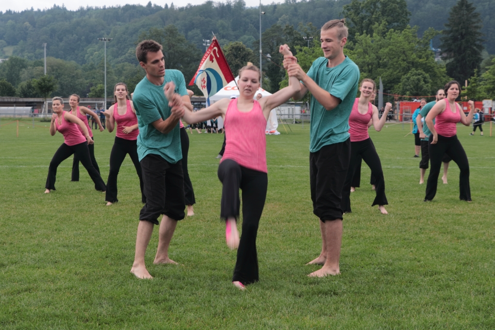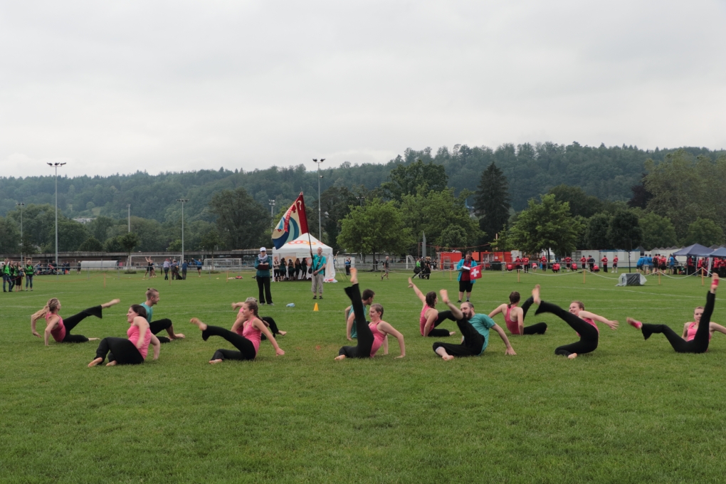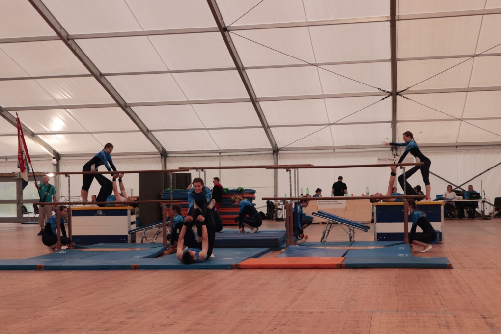 Gymnastik: Von den 10 Turner:innen welche aufliefen, waren 7 das erste Mal an einem Turnfest dabei und machten dementsprechend auch zum ersten Mal Gymnastik. Gerade noch vor dem Regen konnten wir unsere Nummer aufführen und wurden mit der Note 7.20 belohnt.