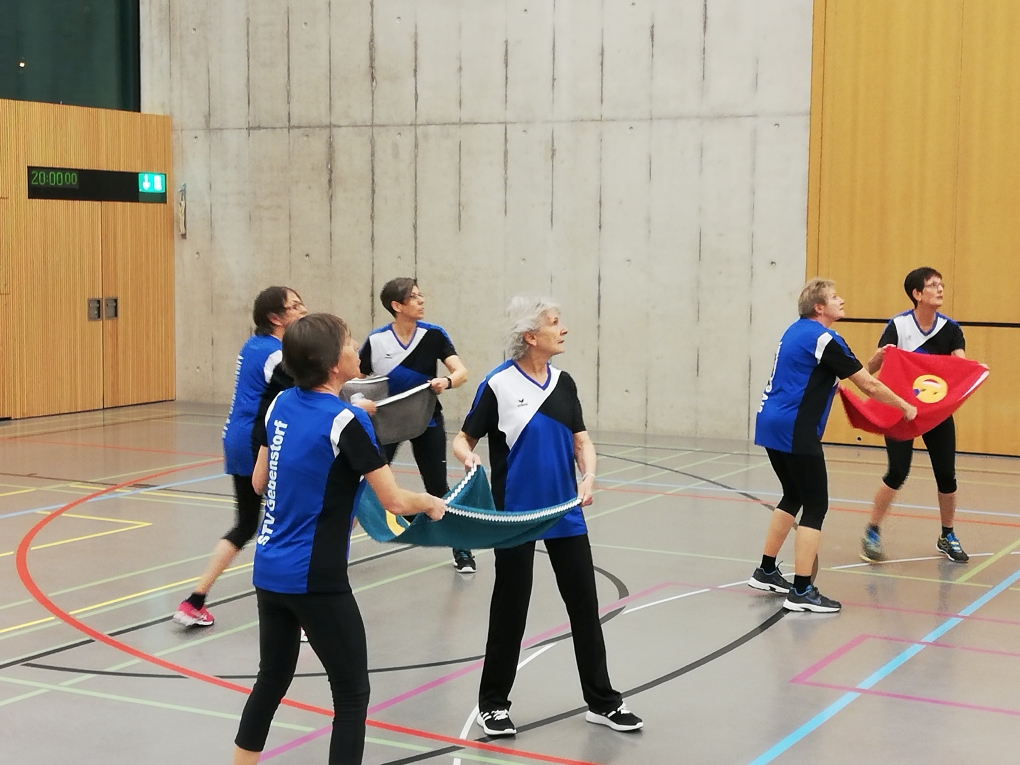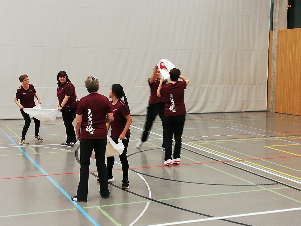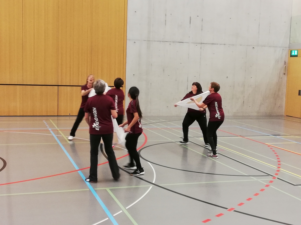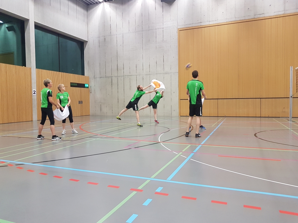 Gymnastik: Von den 10 Turner:innen welche aufliefen, waren 7 das erste Mal an einem Turnfest dabei und machten dementsprechend auch zum ersten Mal Gymnastik. Gerade noch vor dem Regen konnten wir unsere Nummer aufführen und wurden mit der Note 7.20 belohnt.