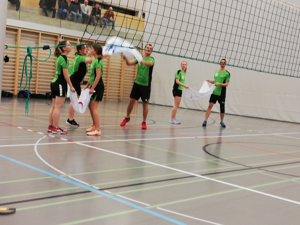 So muss ein Turnier starten! Leider konnten die Spieler:innen dieses Höhegefühl nicht auf die anderen Spiele übertragen. Immer wieder schlichen sich Phasen ein, in welchen man unkonzentriert war und mehrere Punkte hintereinander einstecken musste. So rannte man immer einem Rückstand hinterher. Auch taktische Positionswechsel zeigten keine Wirkung und so gingen die restlichen Spiele verloren. Was dafür aber sehr schön anzusehen war, war wie die jungen Spieler:innen während des Turniers immer mehr auftauten. Praktisch jedes Anspiel, egal ob von unten oder oben geschlagen, ging übers Netz. Es wurde auch den praktisch unerreichbaren Bällen nachgerannt und alle setzten sich mit 100% für die anderen ein. Ich bin mir sicher, in den nächsten Jahren können wir uns wieder an Plätzen weiter vorne in der Rangliste orientieren!