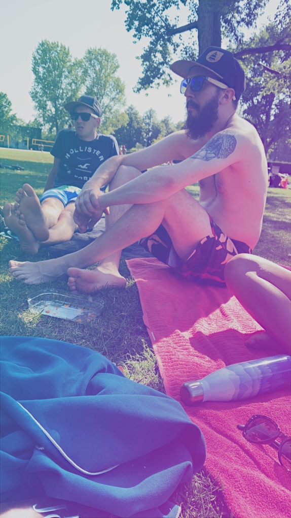 Da wir spät starteten, waren wir auch spät fertig mit dem Wettkampf, bis wir geduscht waren und etwas gegessen hatten, war es bereits 21:00 Uhr. Die grossen Festzelte waren bereits voll und auch vor den Festzelten, tummelten sich so viele Menschen, dass man gar nicht mehr gross zu den Partyorten rankam. Also setzten wir uns auf eine Wiese am See und genossen so den Abend.