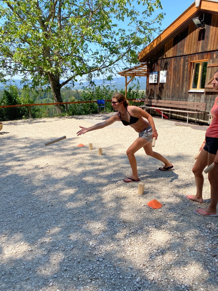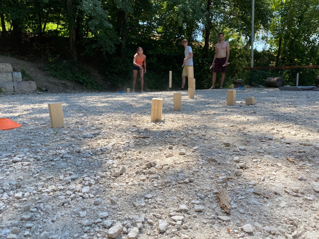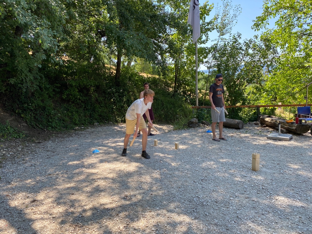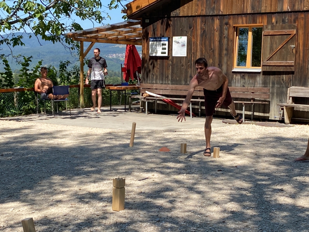 Gymnastik: Von den 10 Turner:innen welche aufliefen, waren 7 das erste Mal an einem Turnfest dabei und machten dementsprechend auch zum ersten Mal Gymnastik. Gerade noch vor dem Regen konnten wir unsere Nummer aufführen und wurden mit der Note 7.20 belohnt.