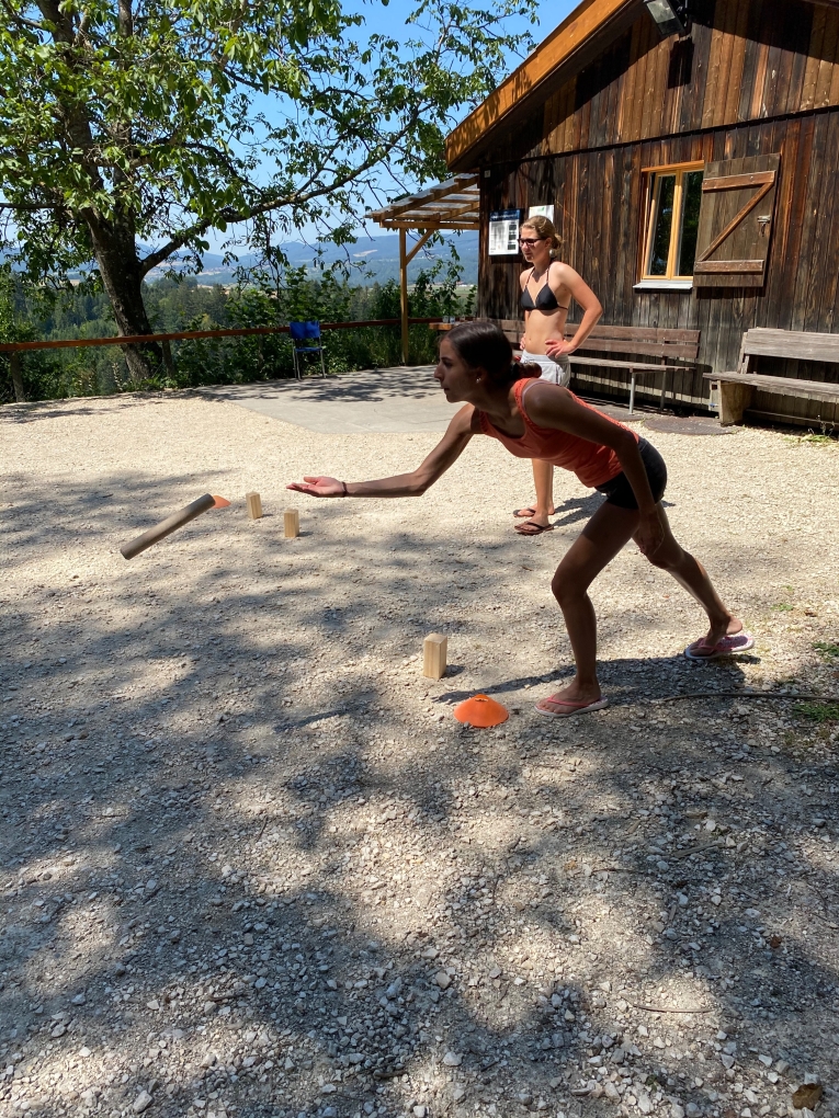 Weitsprung und Schleuderball: Hier zeigte die Organisation des ETF ein grosses Manko. Man musste sich nämlich mit den normalen ÖV zu den Wettkampfplätzen, welche in diesem Fall weit auseinander lagen, begeben. Dementsprechend kamen das Einlaufen und Vorbereiten zu kurz. Immerhin schien dies Svenja nicht zu beeindrucken, mit 4.31m erreichte sie die Note 9.00. Im Schleuderball war es dann so, dass die Anlaufbahn zu schmal war und unsere Aktivriegler:innen wortwörtlich aus der Bahn geworfen wurden.