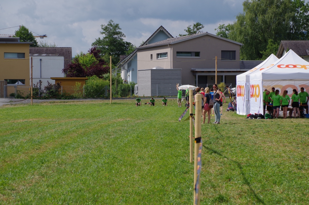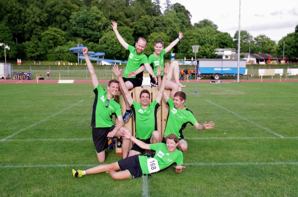 Gymnastik: Von den 10 Turner:innen welche aufliefen, waren 7 das erste Mal an einem Turnfest dabei und machten dementsprechend auch zum ersten Mal Gymnastik. Gerade noch vor dem Regen konnten wir unsere Nummer aufführen und wurden mit der Note 7.20 belohnt.