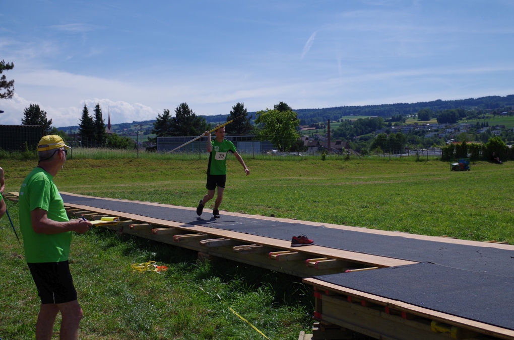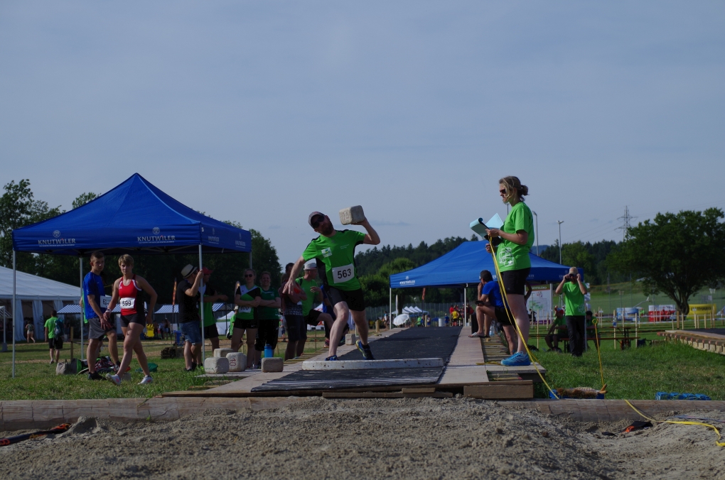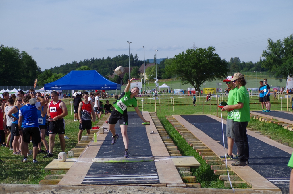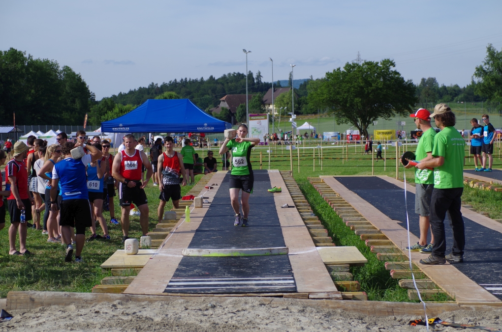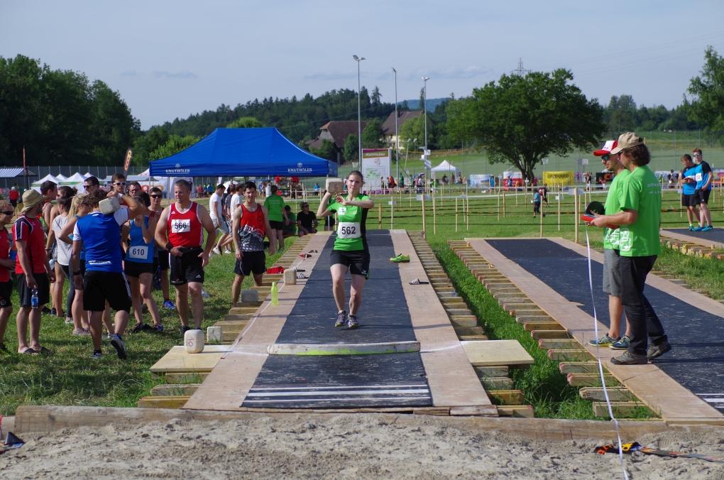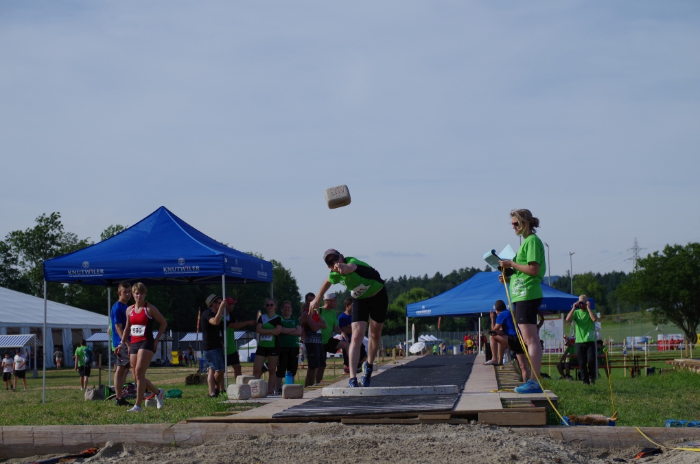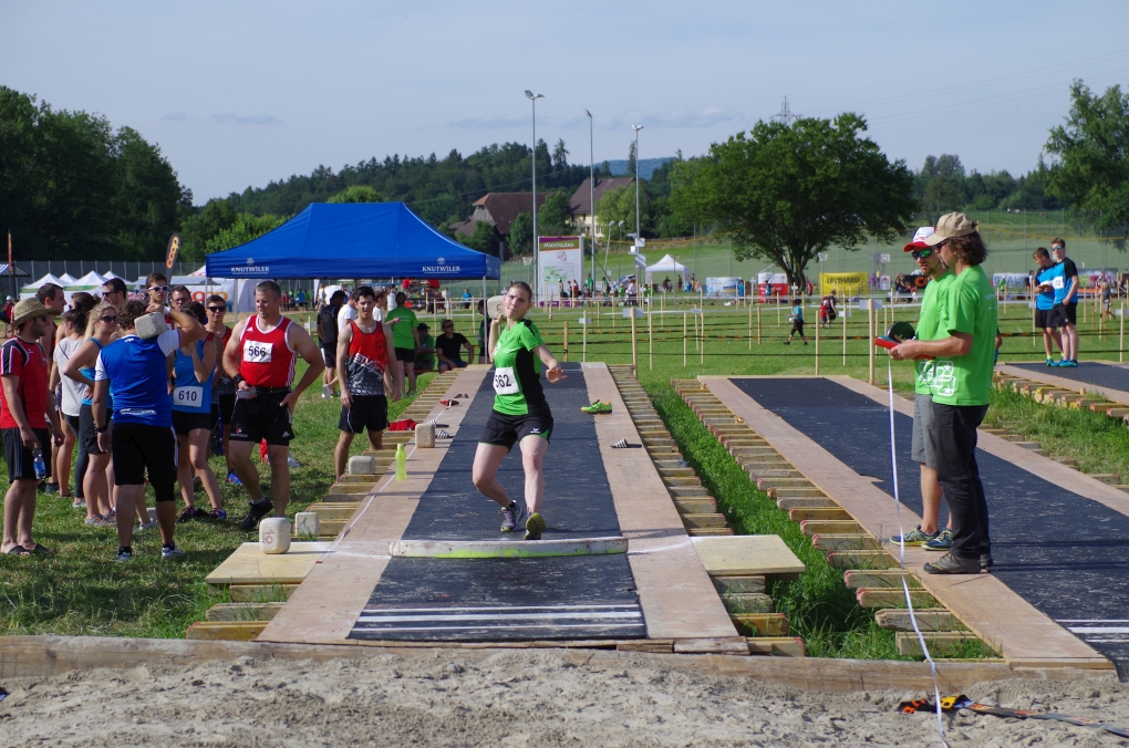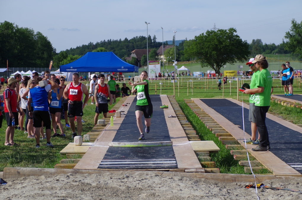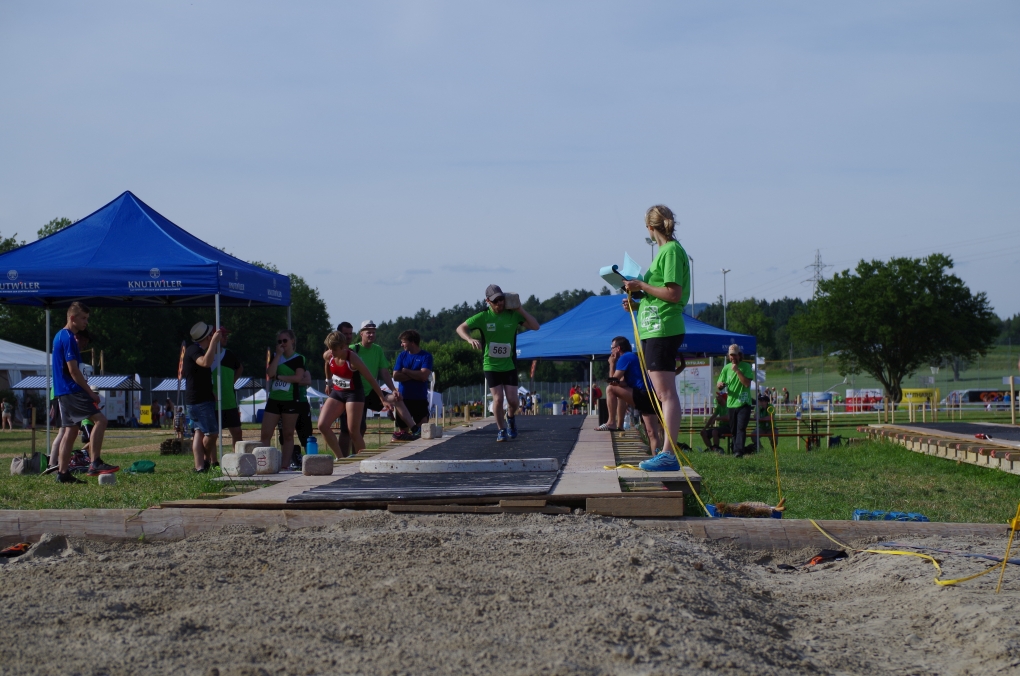 Weitsprung und Schleuderball: Hier zeigte die Organisation des ETF ein grosses Manko. Man musste sich nämlich mit den normalen ÖV zu den Wettkampfplätzen, welche in diesem Fall weit auseinander lagen, begeben. Dementsprechend kamen das Einlaufen und Vorbereiten zu kurz. Immerhin schien dies Svenja nicht zu beeindrucken, mit 4.31m erreichte sie die Note 9.00. Im Schleuderball war es dann so, dass die Anlaufbahn zu schmal war und unsere Aktivriegler:innen wortwörtlich aus der Bahn geworfen wurden.