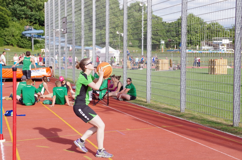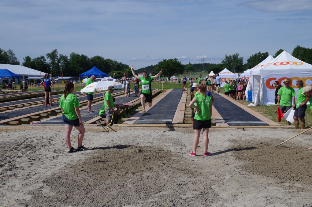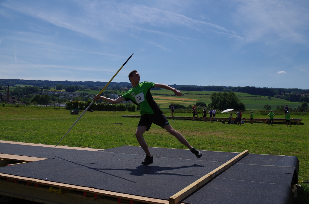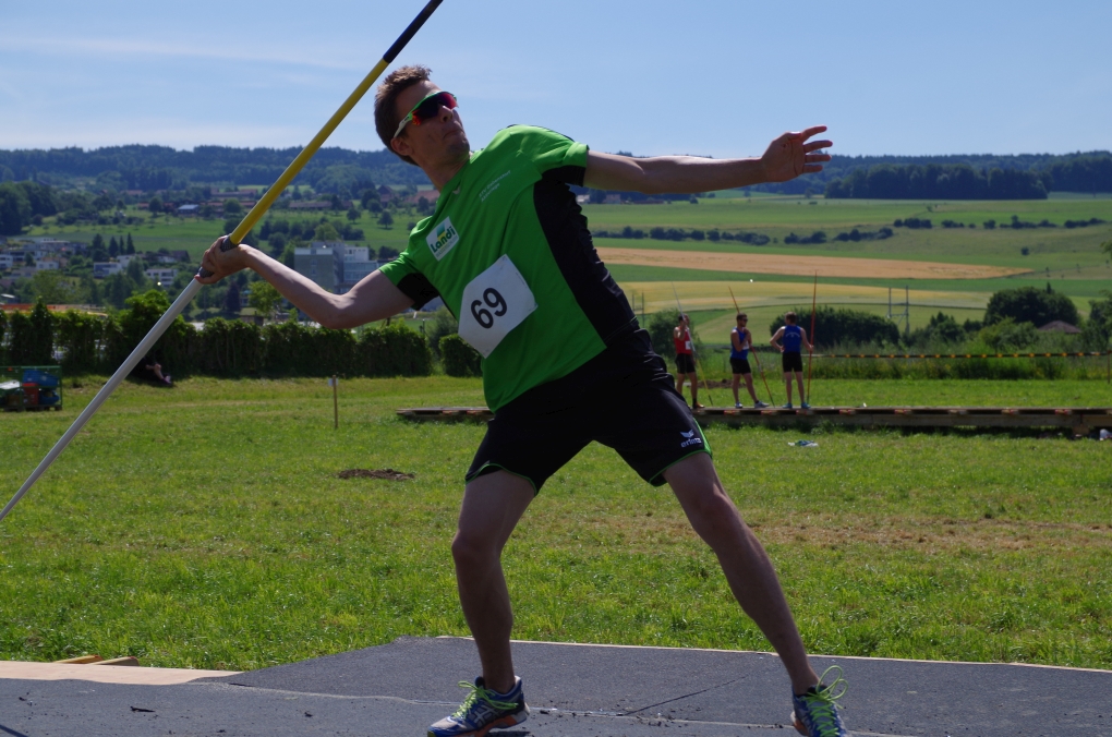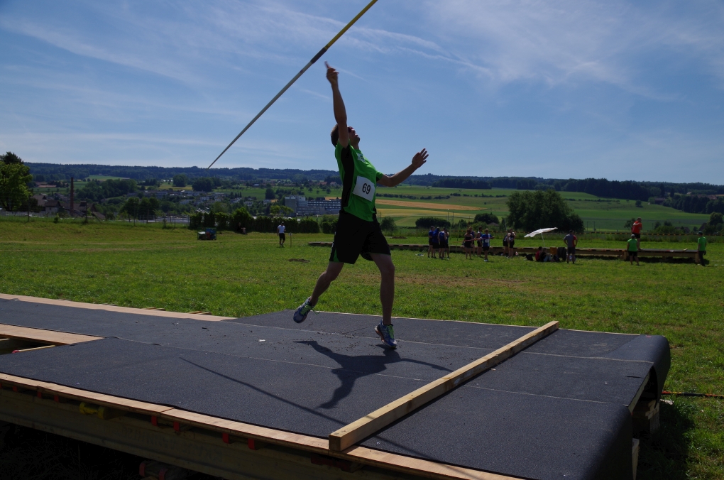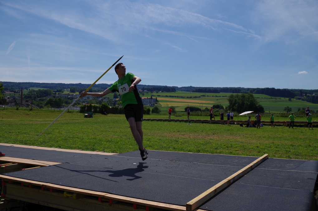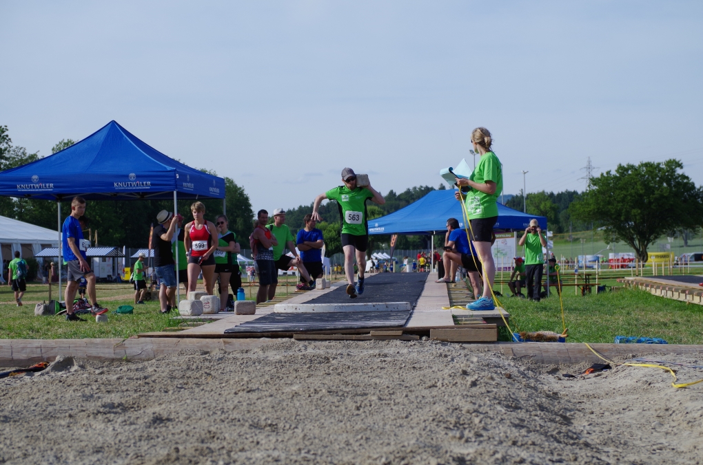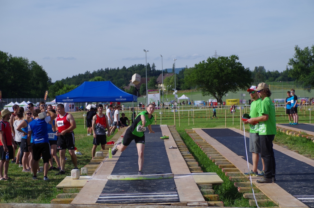 Weitsprung und Schleuderball: Hier zeigte die Organisation des ETF ein grosses Manko. Man musste sich nämlich mit den normalen ÖV zu den Wettkampfplätzen, welche in diesem Fall weit auseinander lagen, begeben. Dementsprechend kamen das Einlaufen und Vorbereiten zu kurz. Immerhin schien dies Svenja nicht zu beeindrucken, mit 4.31m erreichte sie die Note 9.00. Im Schleuderball war es dann so, dass die Anlaufbahn zu schmal war und unsere Aktivriegler:innen wortwörtlich aus der Bahn geworfen wurden.