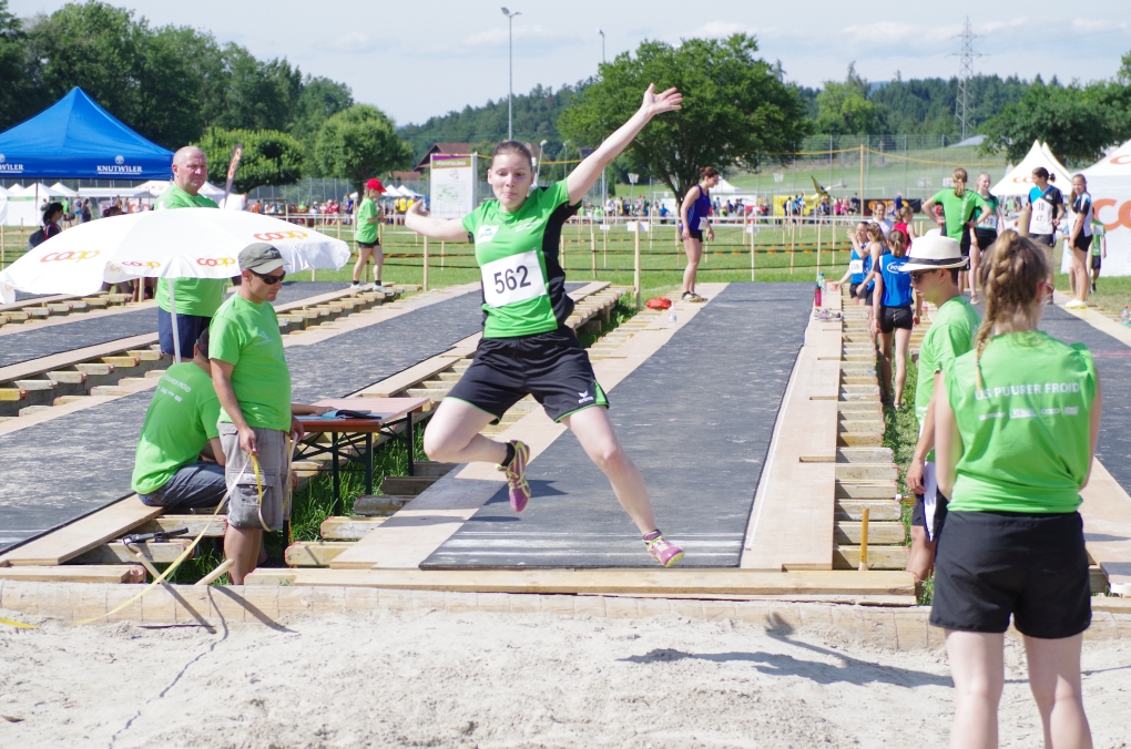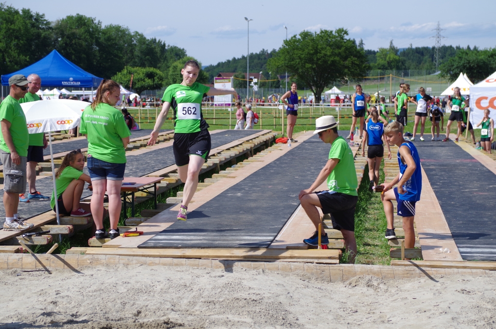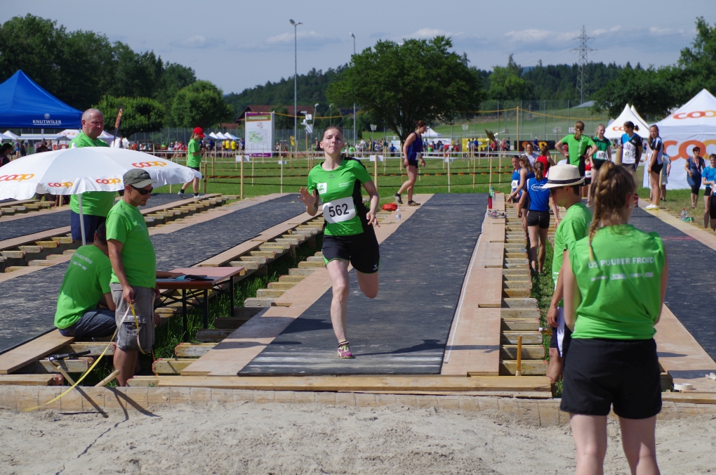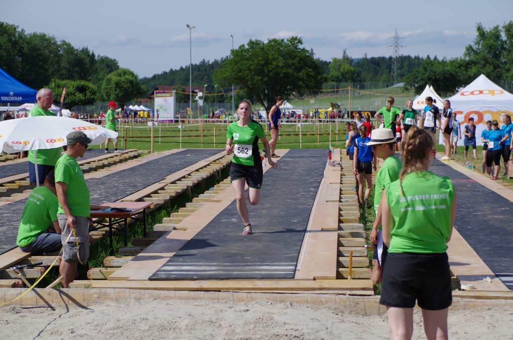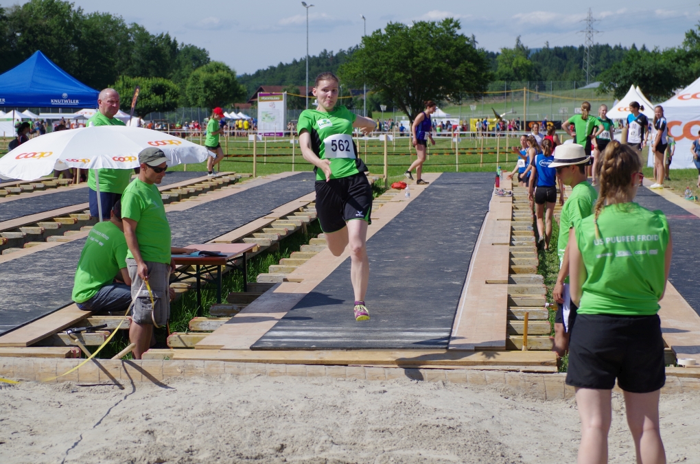 Hochsprung: Da der Autor während dieser Disziplin am Fachtest machen war, muss er die Leistung anhand der Rangliste beurteilen... was nicht allzu schwierig ist, denn auch hier war sie gut. Chiara und Chanti übersprangen 1.40m und erreichten so die Note 9.50, zusammen mit den anderen Springern erreichten sie so die Gesamtnote 8.10