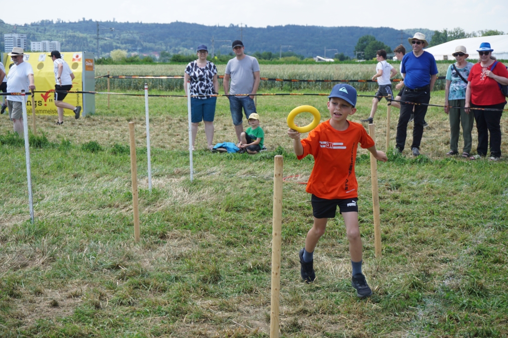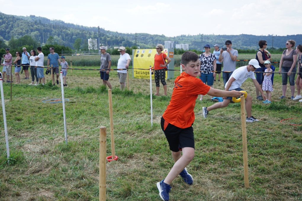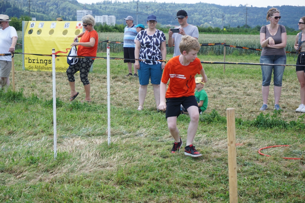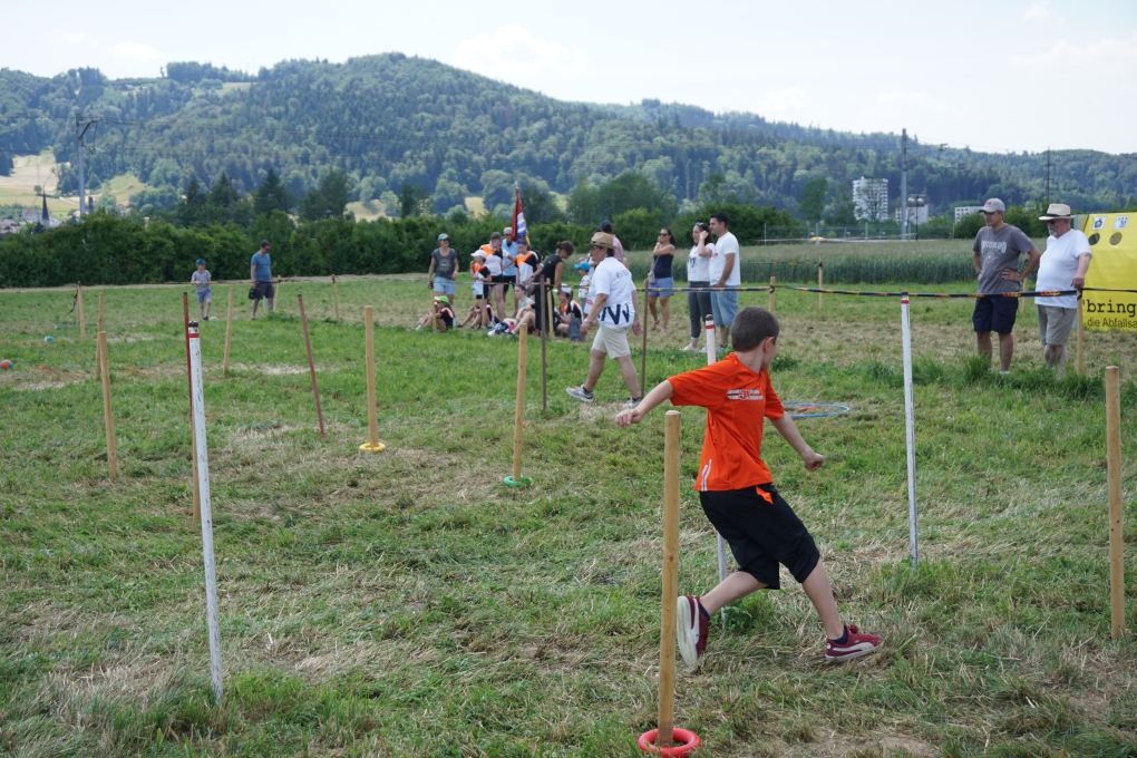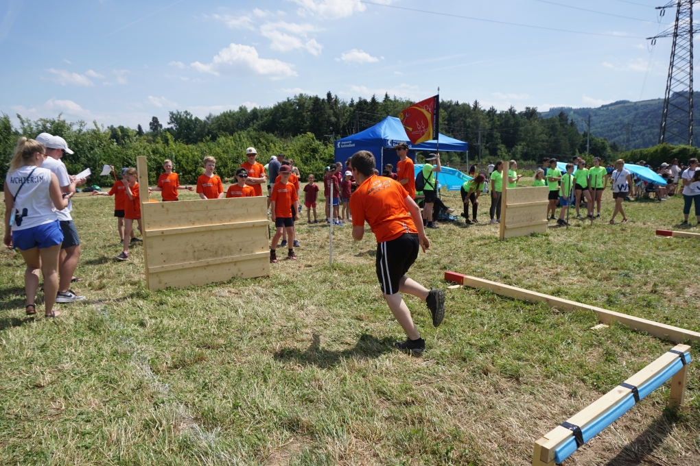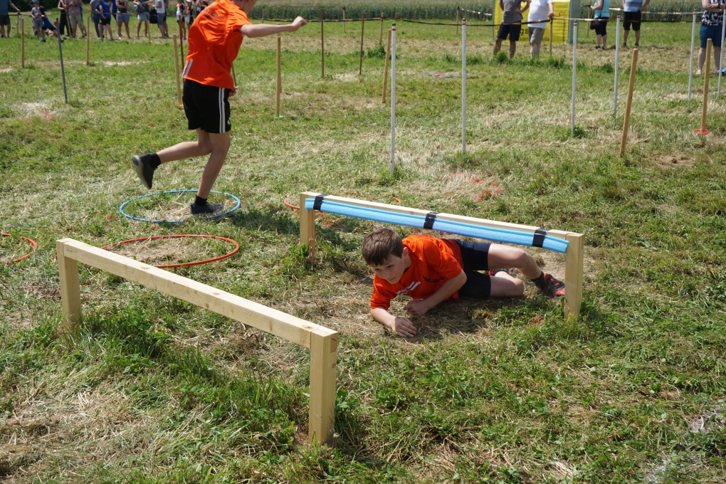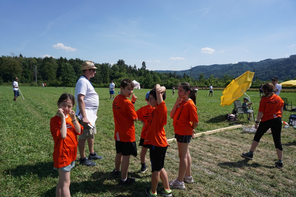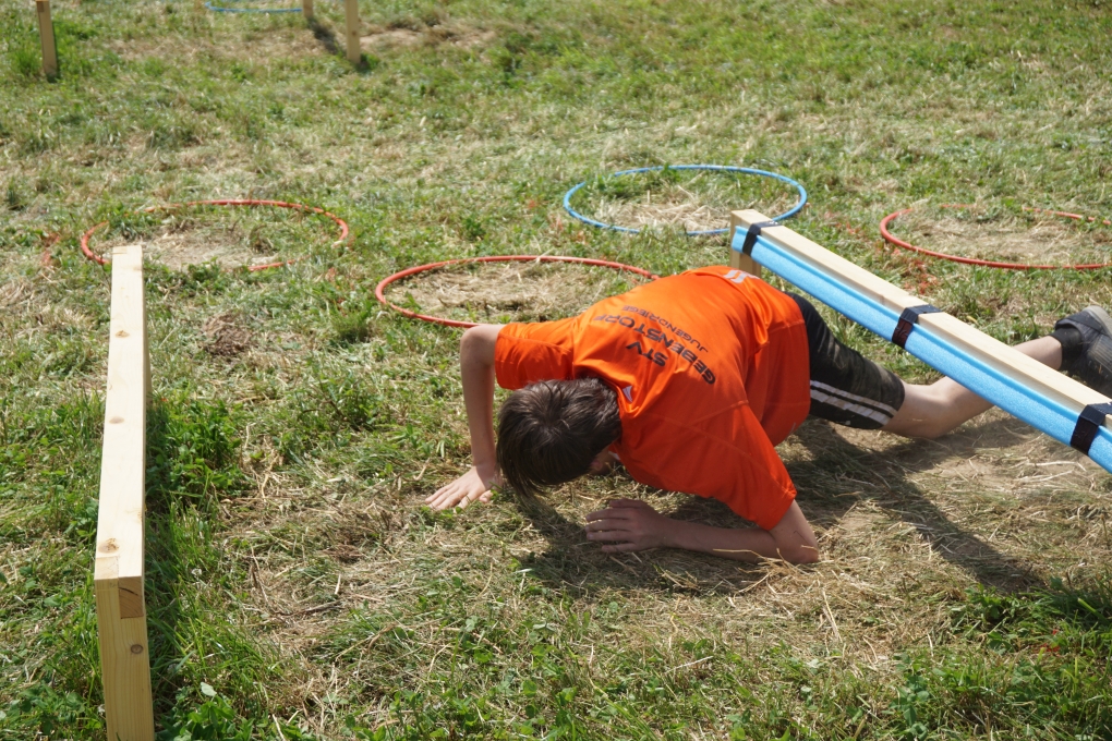 Am Morgen war das Wetter noch trist und kalt, leider hatten die Jugikids noch in diesem Wetterabschnitt den Posten Seifenbahn, wo in der Badehose über eine Blache gerutscht werden musste. Kurz vor dem Mittag kam die Sonne zum Vorschein und der letzte Posten vor dem Mittag konnte in der Sonne absolviert werden. Die Mittagspause war geprägt von langem Anstehen für die Pommes und Hot Dog, da viele gleichzeitig die Mittagspause hatten.