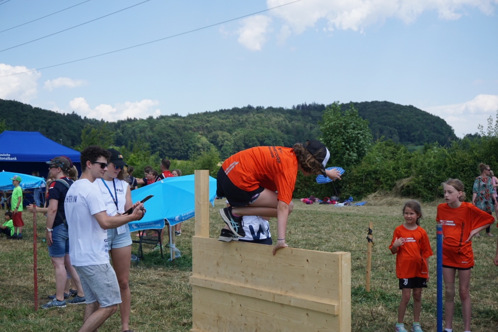 Gestärkt nach dem Zmittag ging es weiter mit den letzten drei Posten. Die ganze Jugi samt unserem Maskottchen Minimichi feuerten die startende Gruppe an und alle hatten den Plausch. Nach den Jugikinder war noch der legendäre verkürzte Leiterwettkampf. Unsere vier Leiter durften drei Posten nach beliebiger Reihenfolge bestreiten und konnten auch noch ihr Bestes geben.